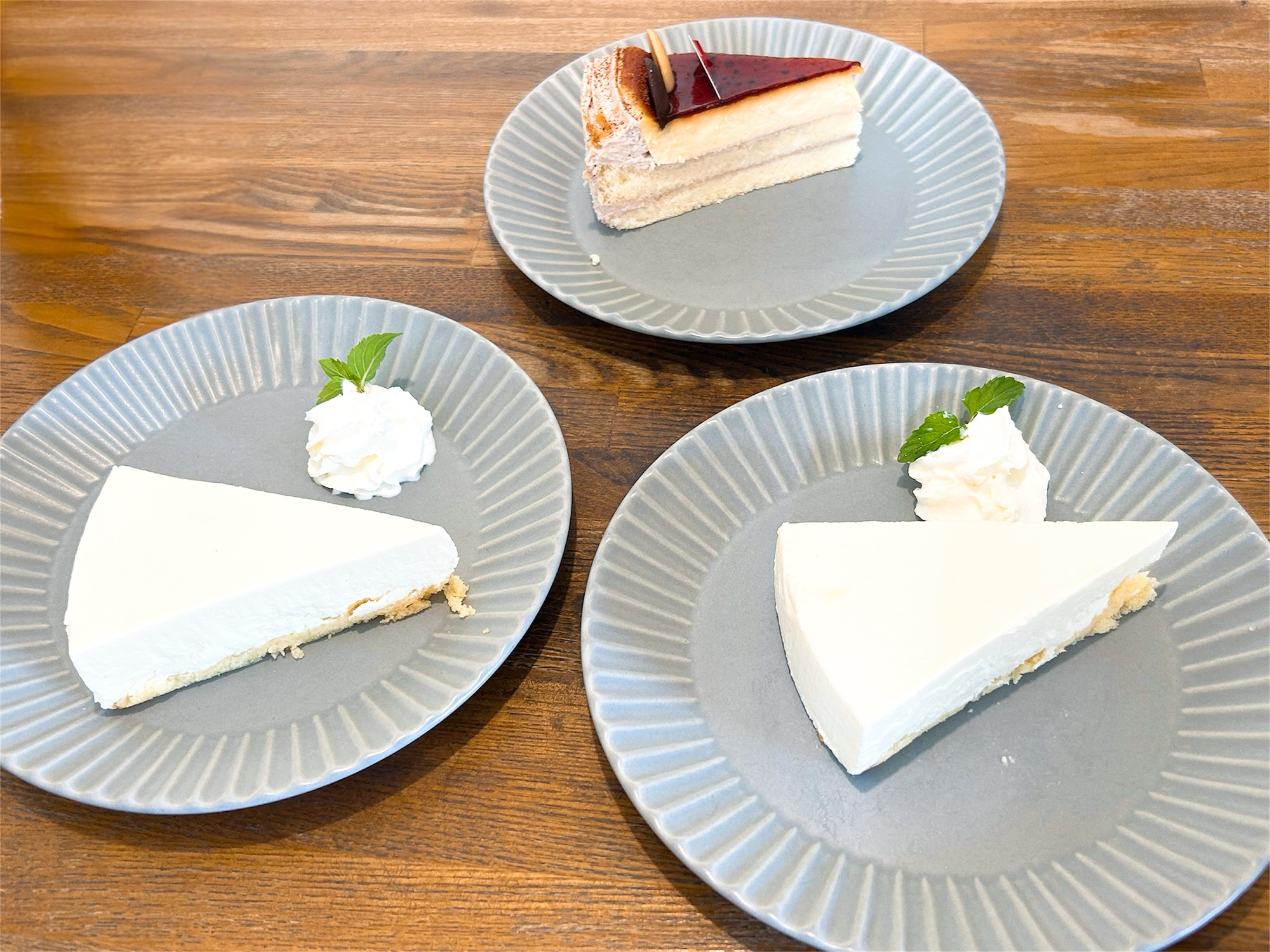 どのスイーツにも淡いブルーのお皿が使われており、スイーツとの色の組み合わせが抜群◎