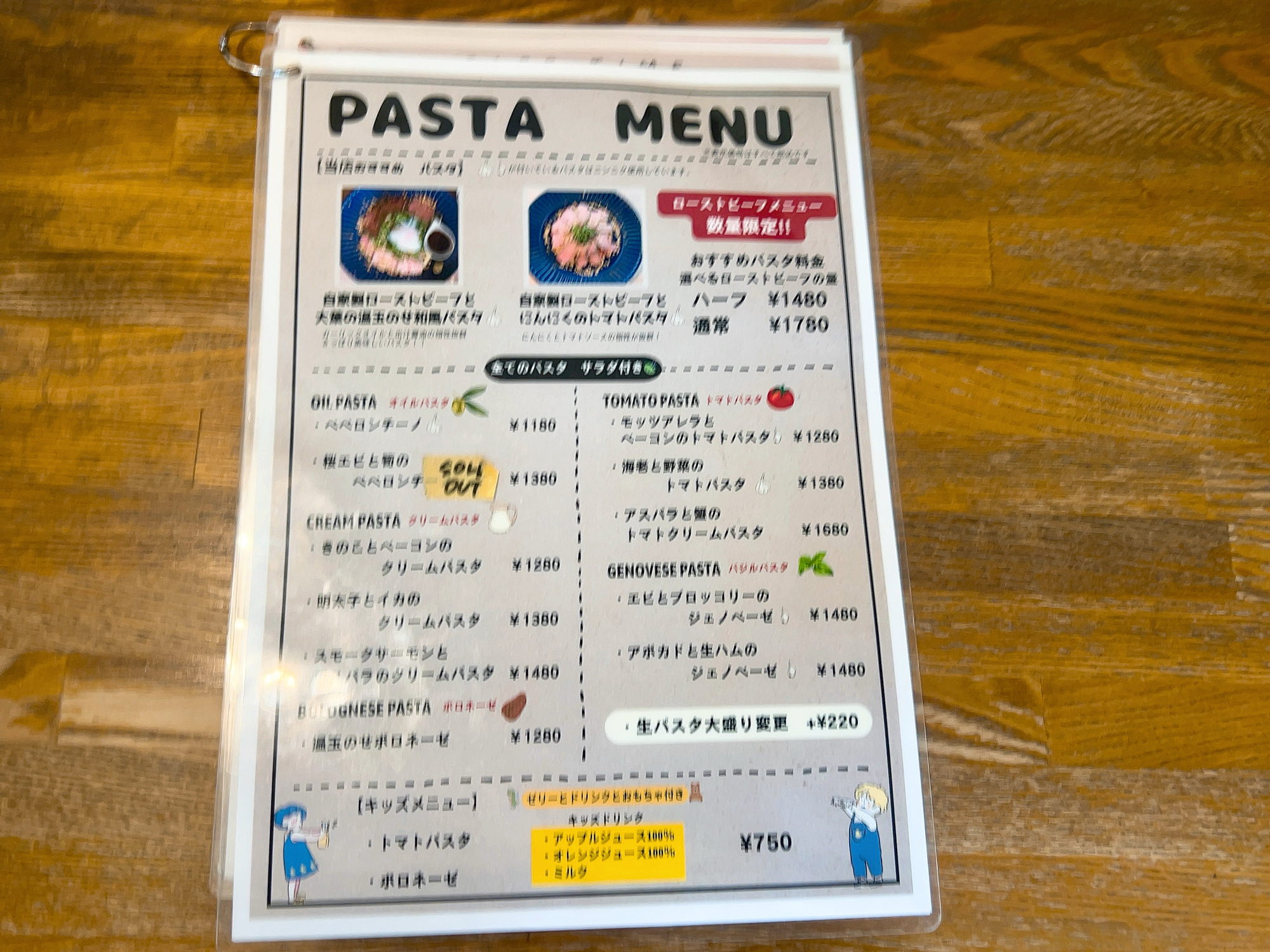 ※パスタの単品の場合は1,280円