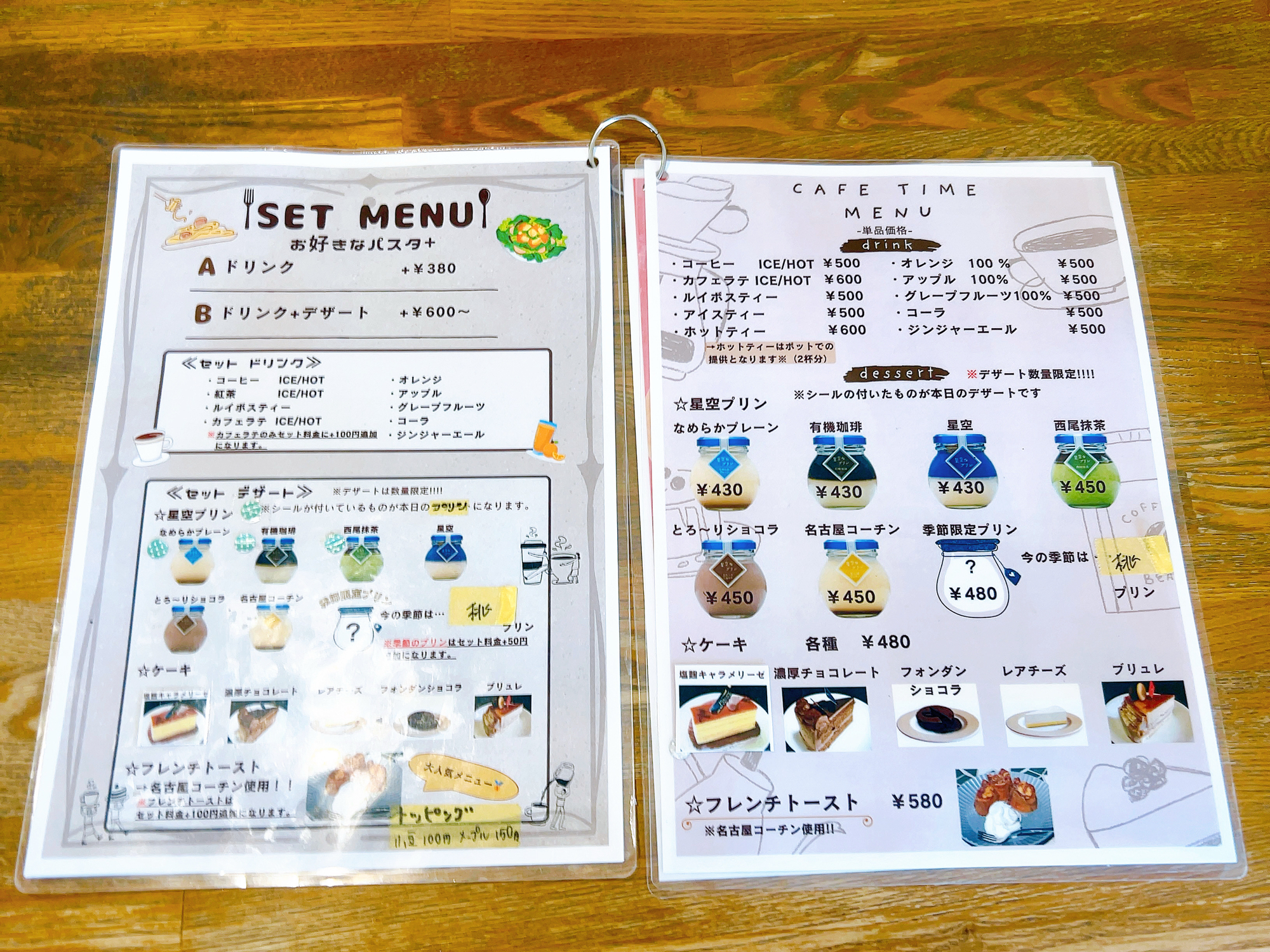 こちらがパスタとパスタのセットメニュー。パスタにドリンクorドリンク&デザートをつけられるセットメニューがあり、なんとも贅沢なランチタイムが過ごせます。
