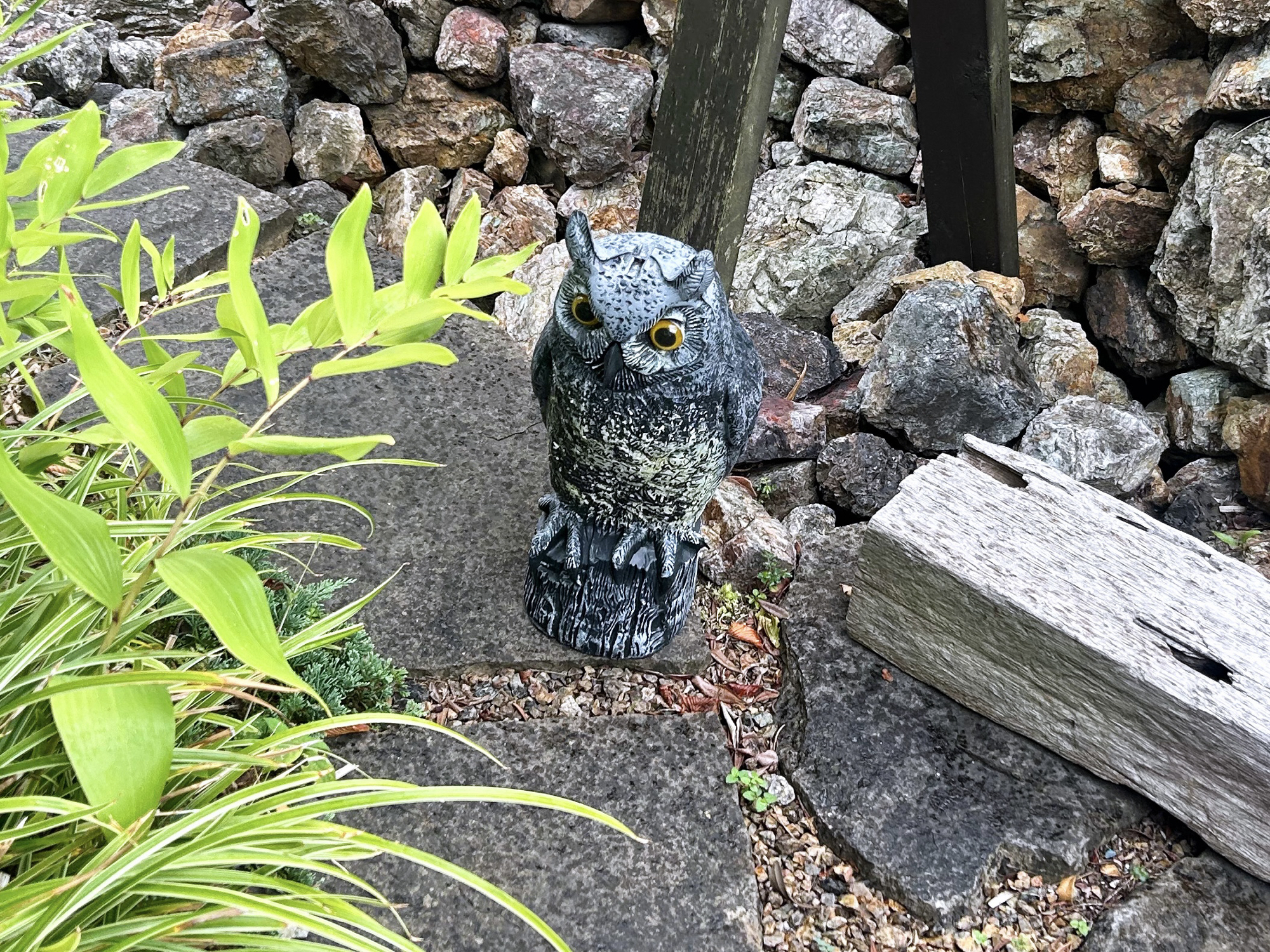 お店の近くには植物やフクロウのオブジェが…!
