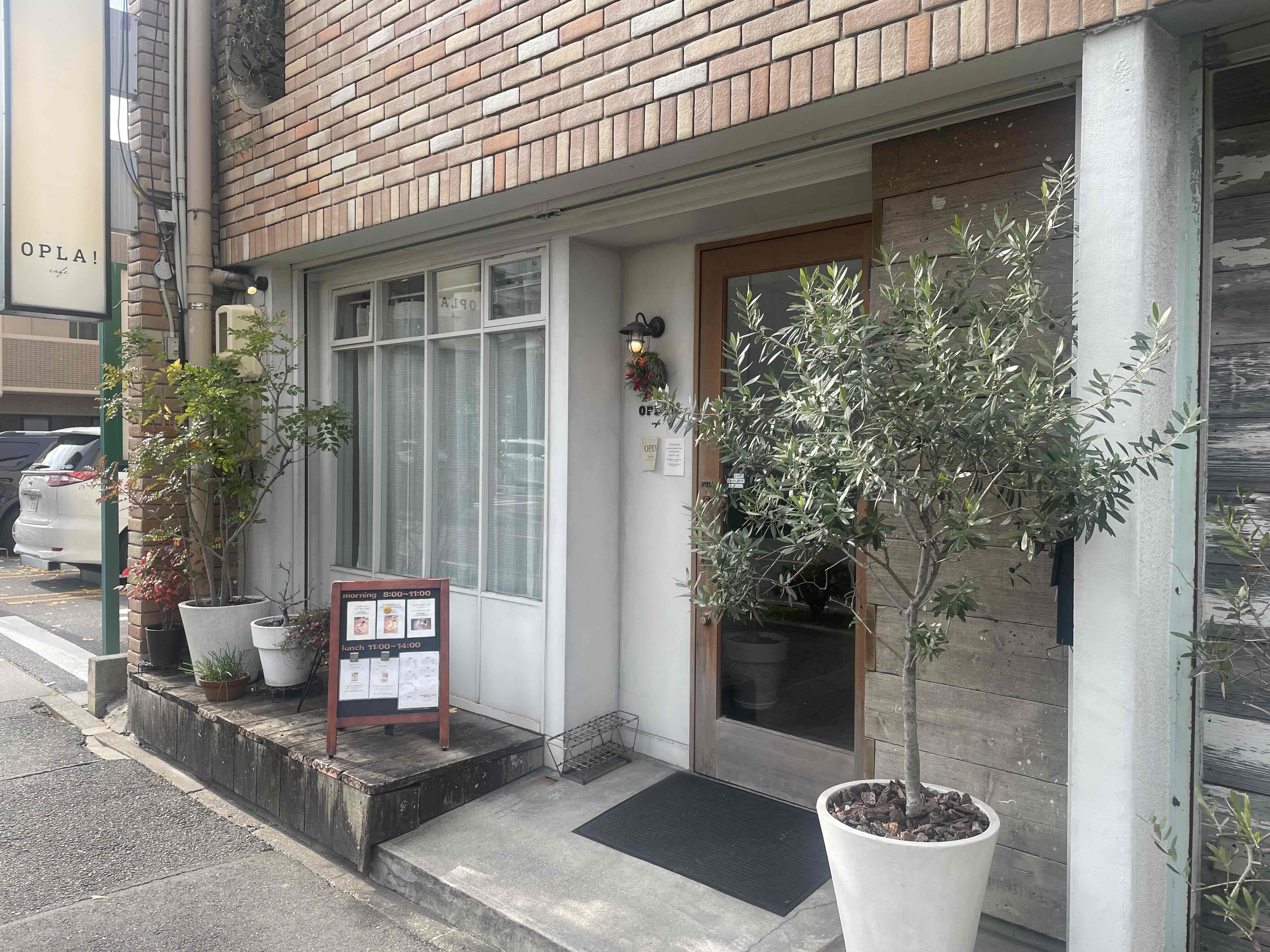 今池駅と千種駅の間の住宅街に建つ、レンガ調の外観が特徴のビルの一角。小さなかわいらしい入り口のカフェが、今回ご紹介する「Cafe OPLA!(オプラ)」さんです。