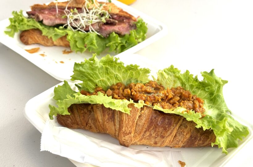 ちょうどお昼時に差し掛かっていたこともあり、今回は自慢のクロワッサンを、食事としてしっかり楽しめる総菜系のサンドイッチとしていただくことにしました。