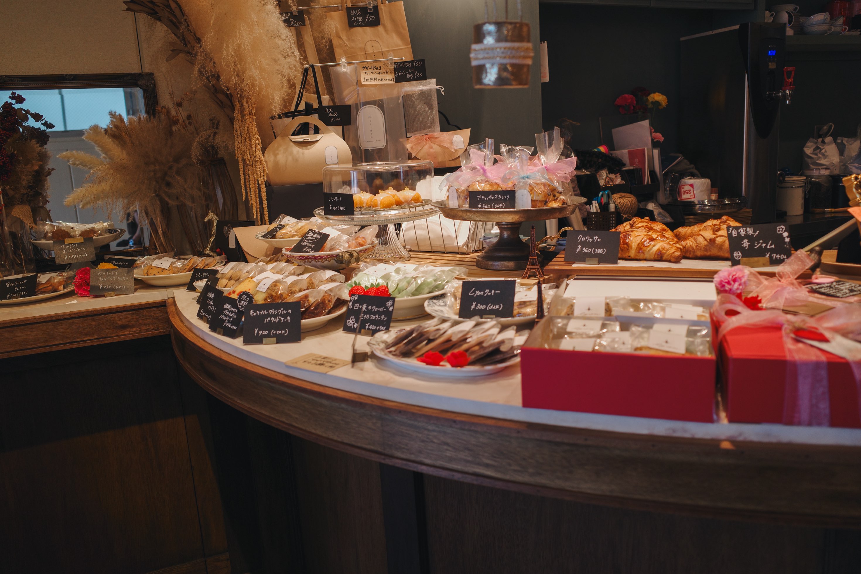 カウンターの上には焼き菓子が並んでいて、こちらはテイクアウトも可能。クッキー、マドレーヌなど、どれもシンプルだけれどしっかりとした味わいがあり、お土産にも、自分へのご褒美にもぴったり。