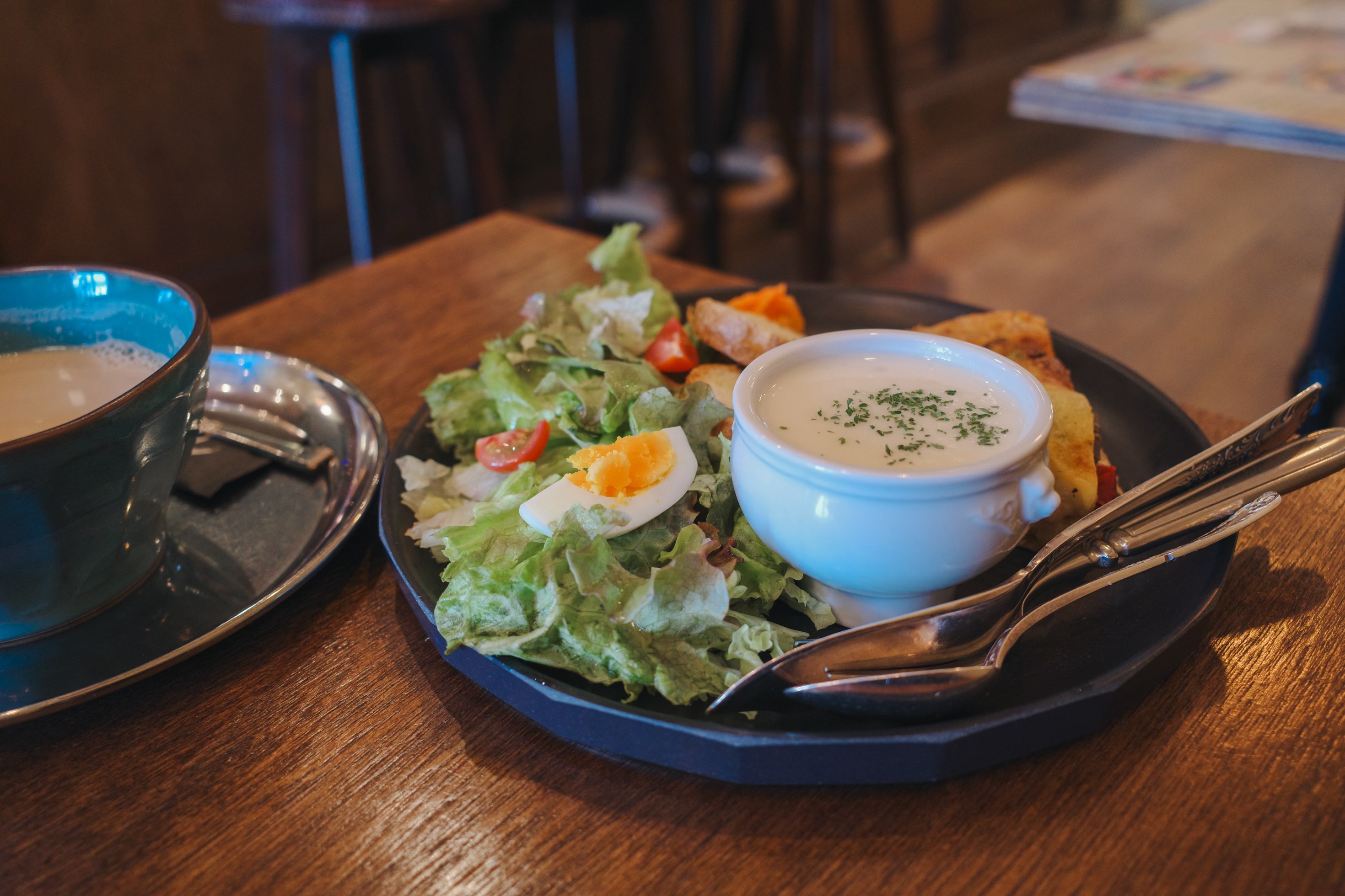 日本のカフェではあまり見かけないスタイルですが、この1杯があるだけで、午後のゆったりした時間を過ごしている気分に。