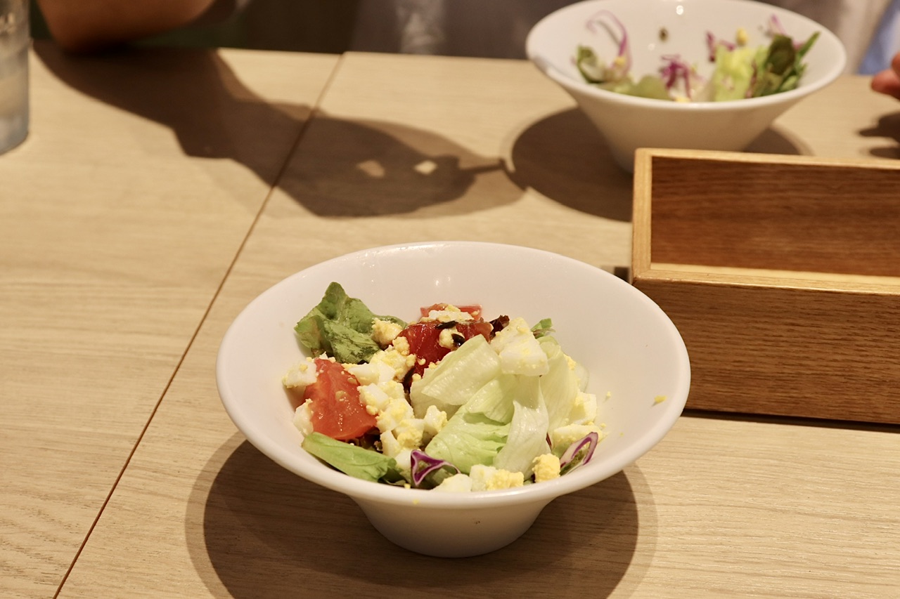 ランチにはミニサラダがついてくるのですが、こちらにも卵入り。フレッシュな甘酸っぱいトマトに爽やかなドレッシング、マイルドな卵がバランス良しです。