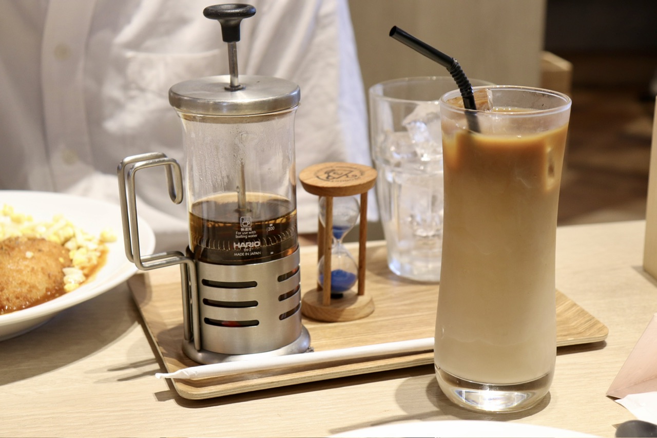 想像以上に本格的なドリンクがついてきて嬉しい誤算!HARIOのティープレスで提供されるセイロンウバのアイスティー、なんだかいい気分ですよね。