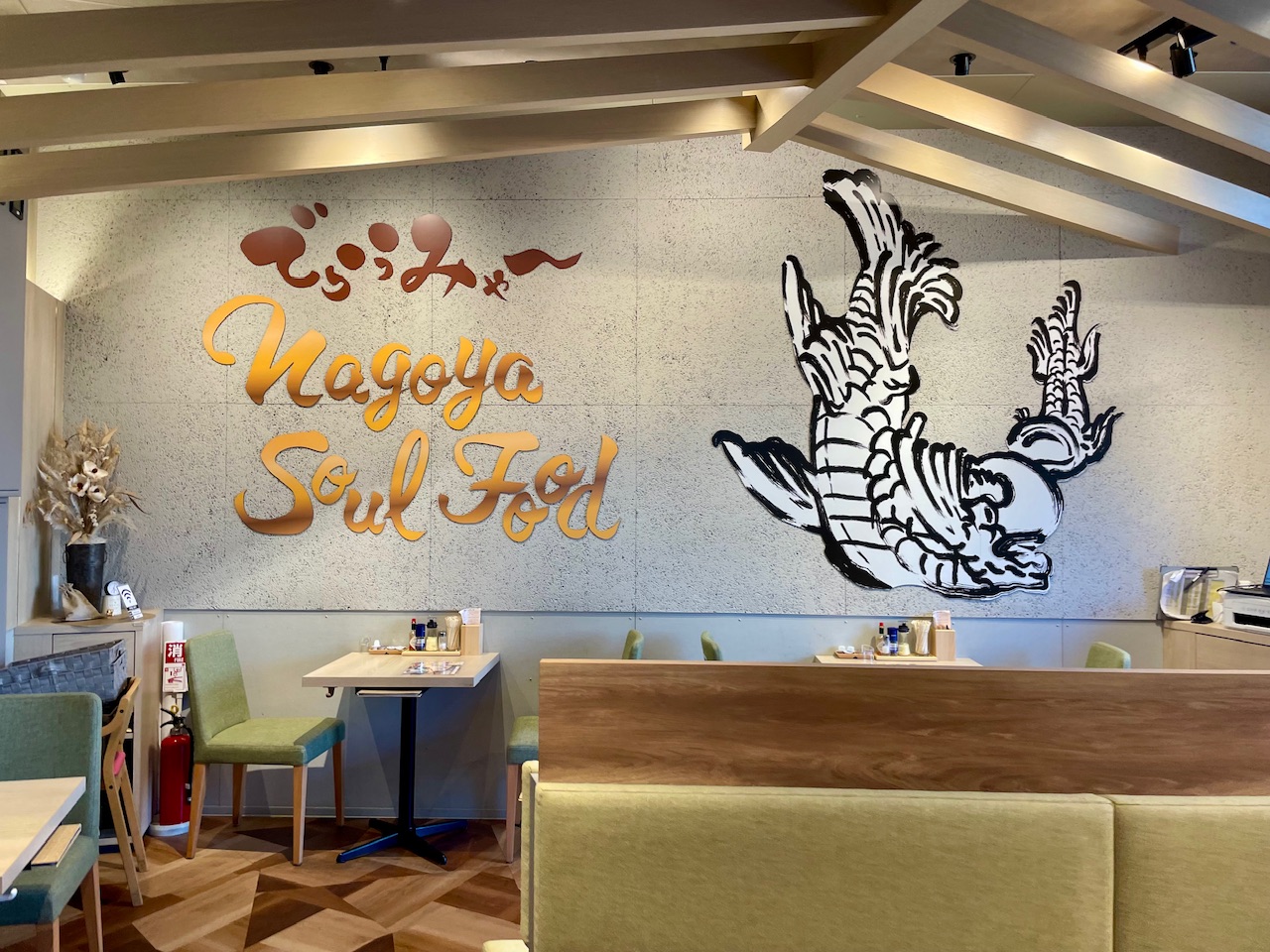名古屋らしさを感じさせるこの存在感が、空間全体に遊び心と郷土愛を添えています。観光で来たら絶対に写真を撮りたくなってしまいますよね!