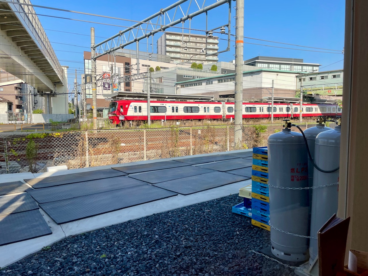 窓の外、電車がすぐ目の前を通り過ぎていく!!