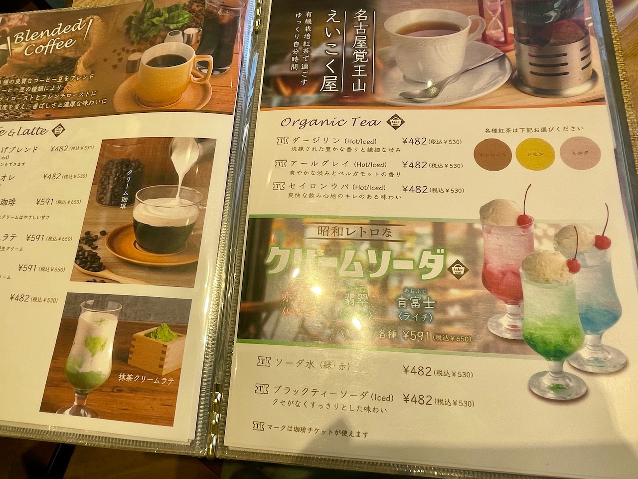 こちらはドリンクメニュー。カラフルなクリームソーダがレトロ可愛くて目を惹きました。