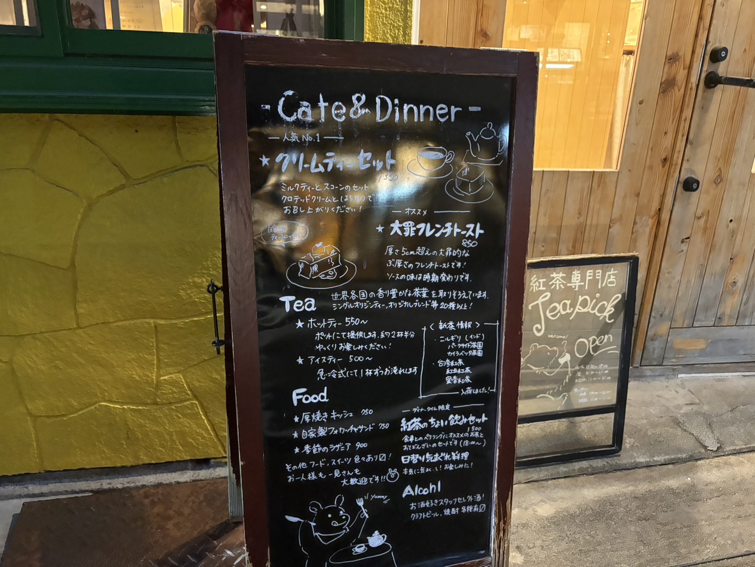 スコーンは黒板に書かれた中から1種類、紅茶はメニューの中からお好きなものを選べます。