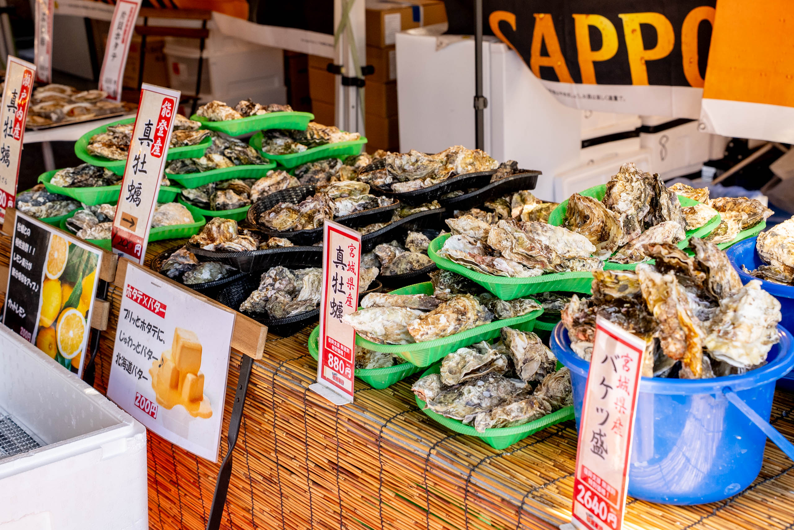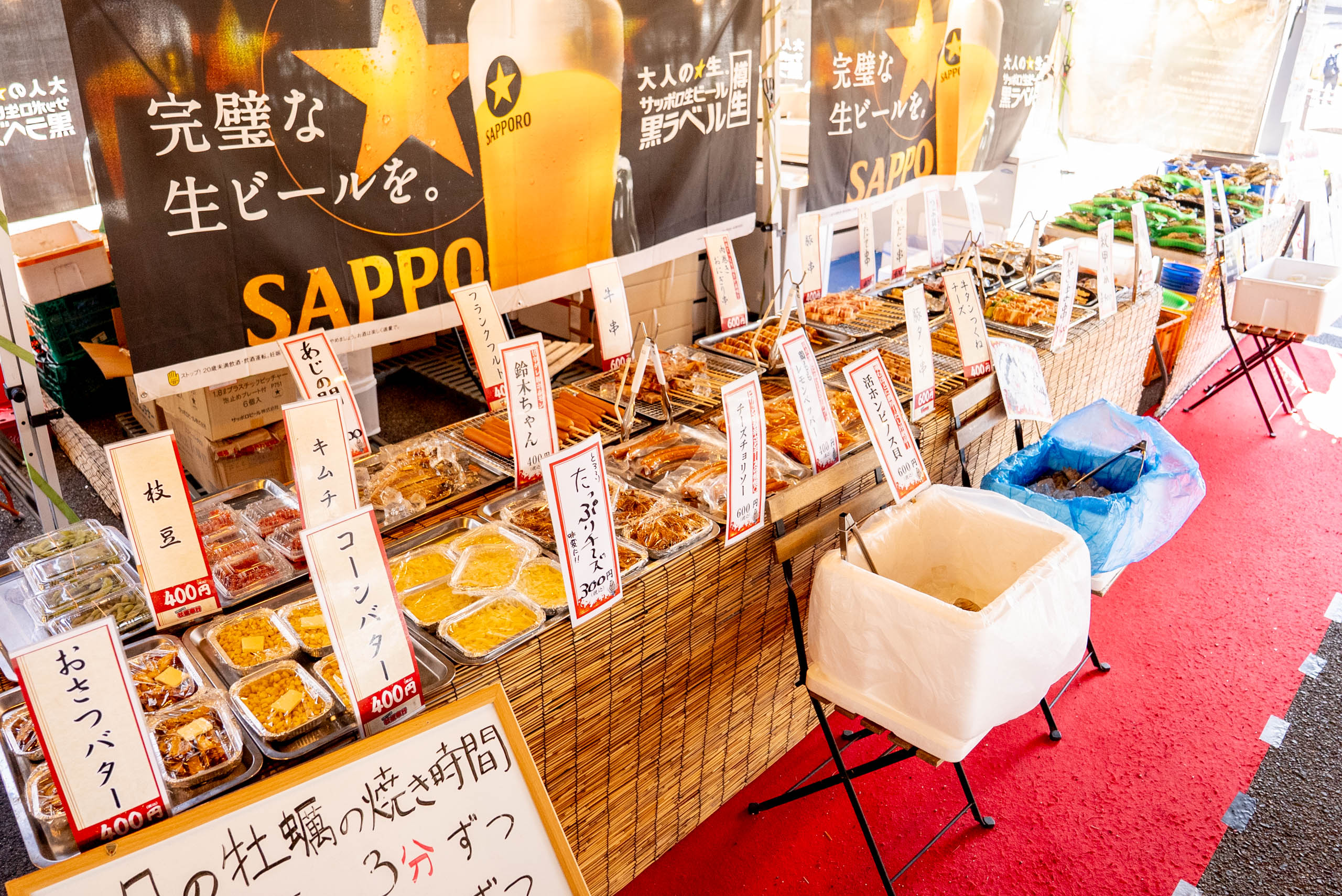 屋台には牡蠣をはじめとしたメニューがズラリと並んでおり、お祭りのような雰囲気にワクワク♪