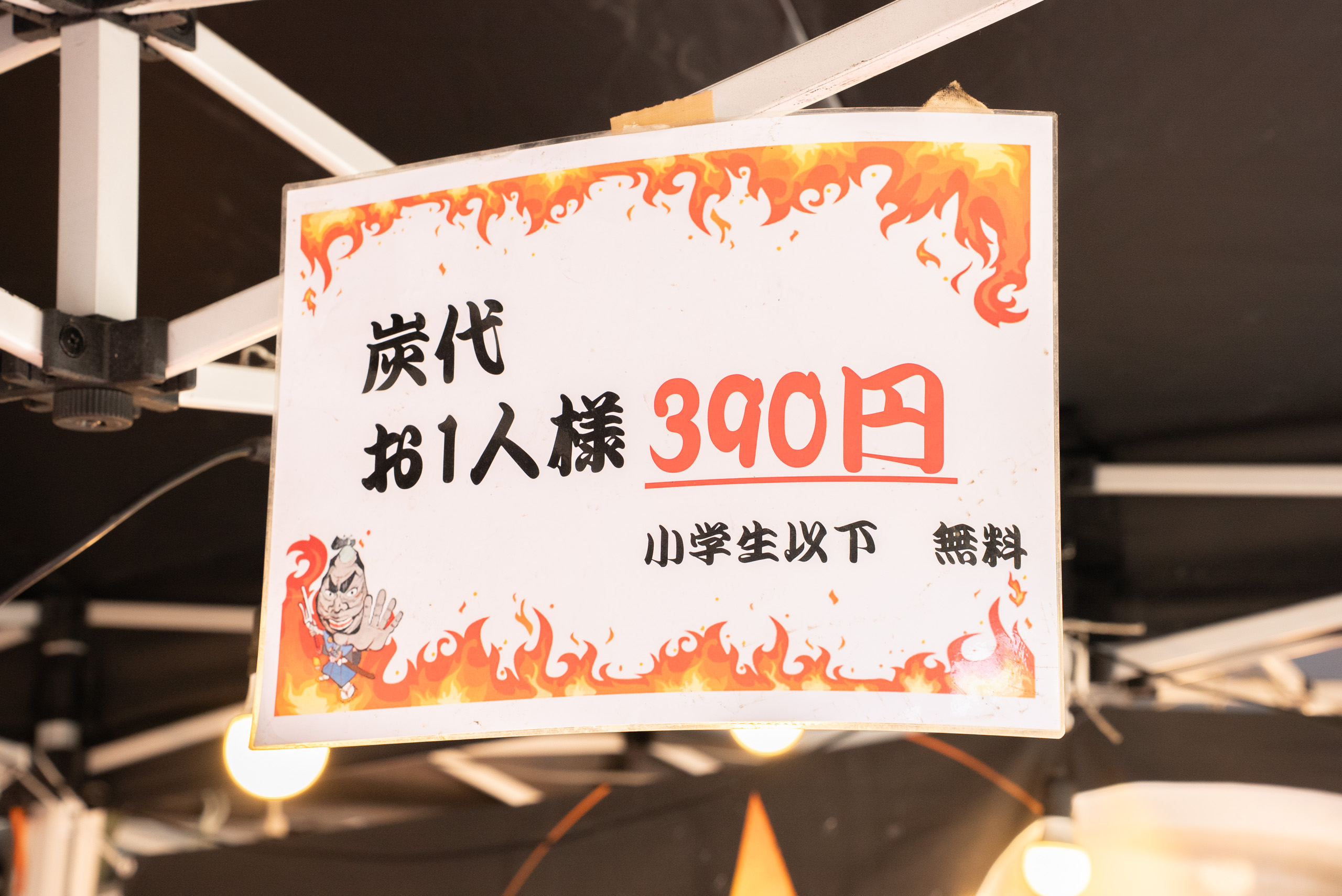 なお、中学生以上は炭代(テーブルチャージ)が必要ですが、小学生以下は無料。お子さん連れにも優しい料金設定ですね。