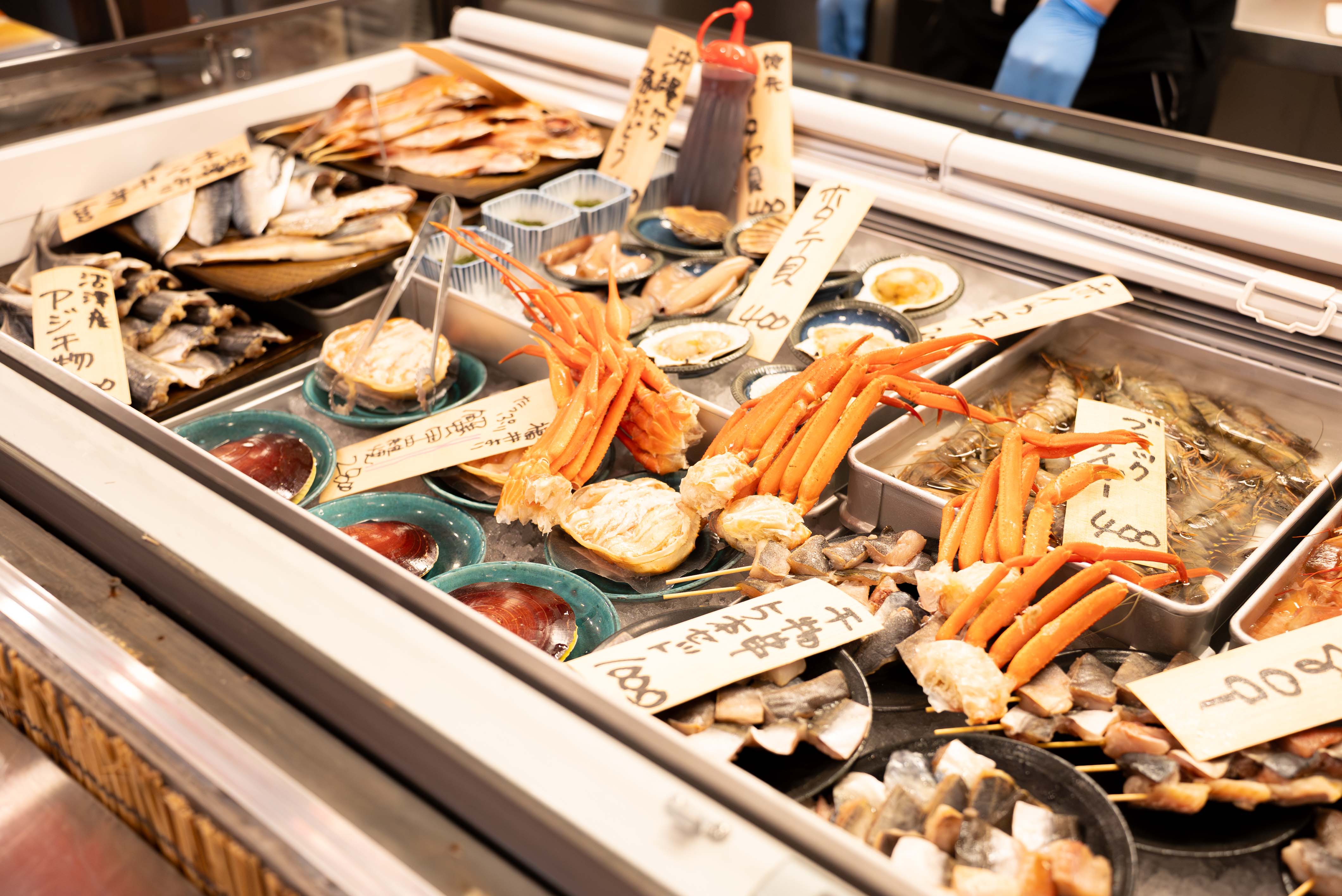 さらに、チケット制で楽しめる追加メニューが約70種類用意されており、市場直結ならではの新鮮な魚介やお刺身、旬の食材を自由にプラスできます。合計150種類以上という圧倒的な品揃えで、何度訪れても飽きずに楽しめる充実のラインナップです!