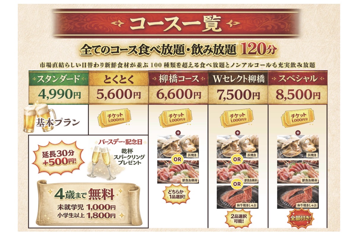 コースは全5種類!4,990円(税込)からとコスパ抜群!