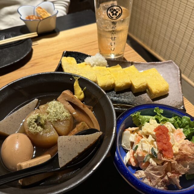 だし料理といえば絶対に外せない「おでん」をはじめ、出汁巻きたまごやポテトサラダにも出汁にこだわっています。