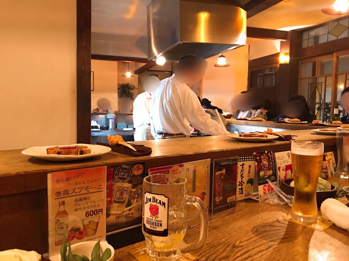 創業45年以上と長く愛され続けている串揚げ専門店で、店内はカウンター席、テーブル半個室、お座敷半個室の合わせて37席。半個室はすぐに予約で埋まるそうなので、早めの予約がおすすめです。