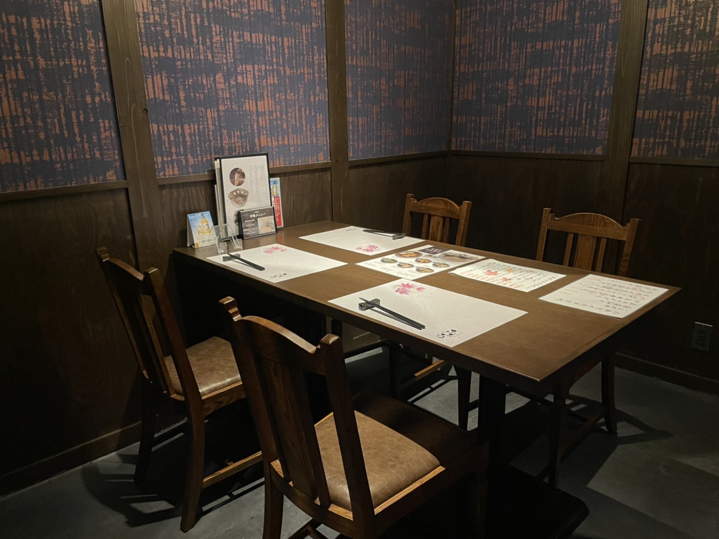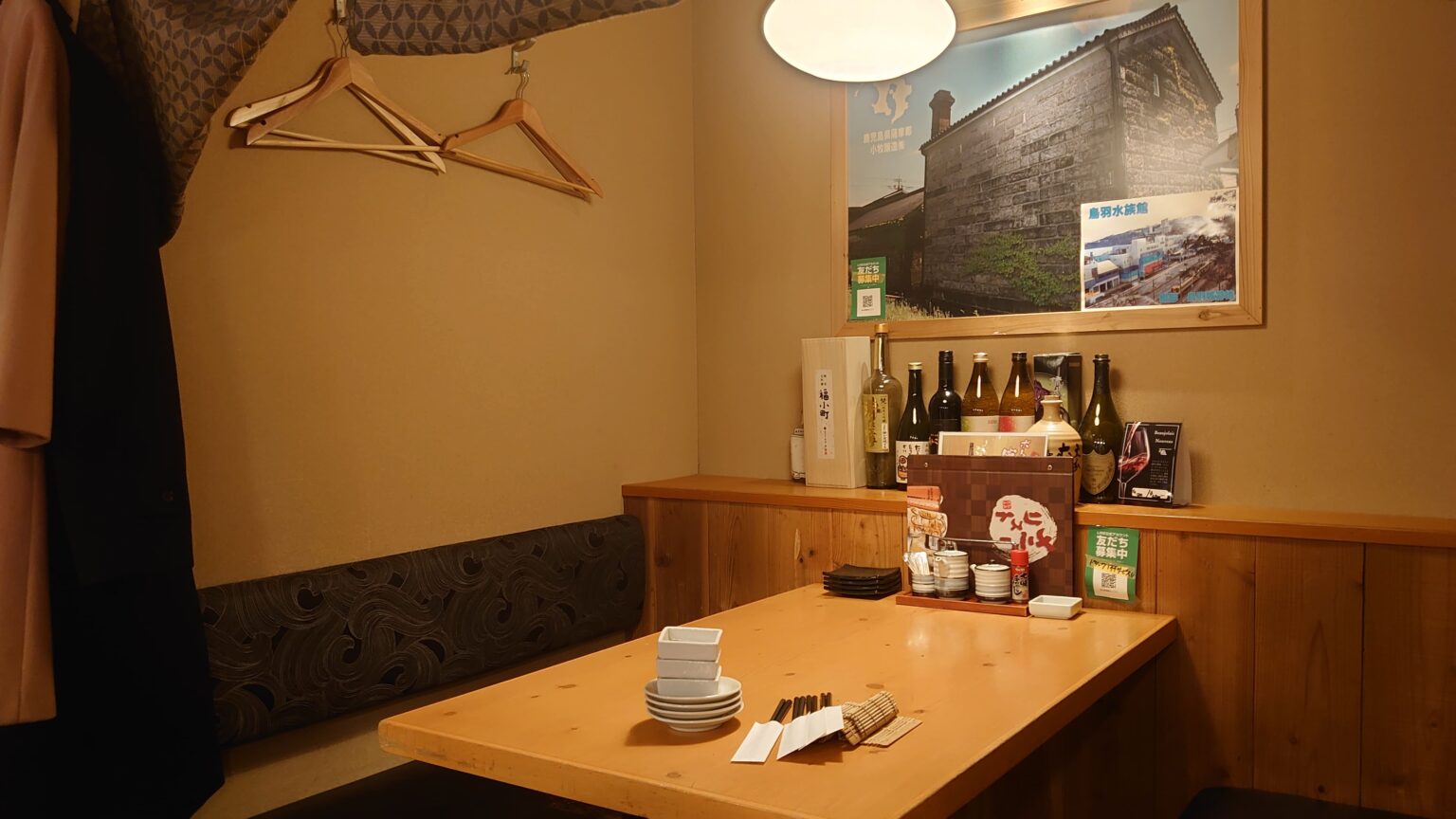 周りを気にせず会話が楽しめる、個室席もあります。