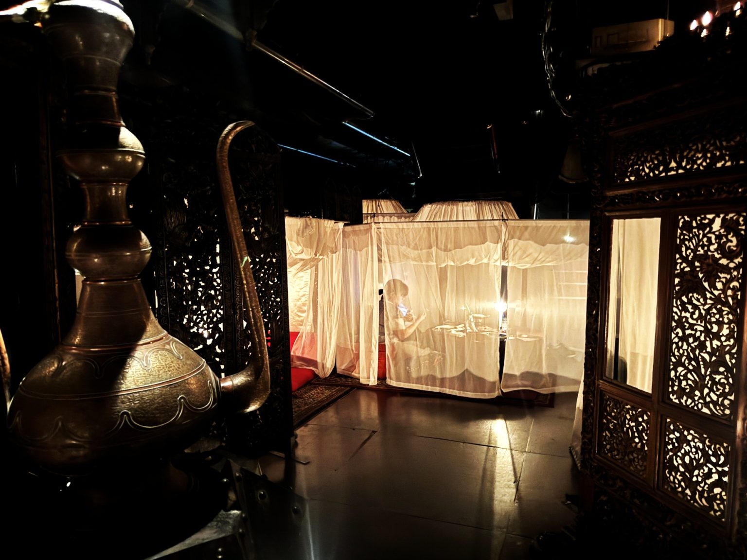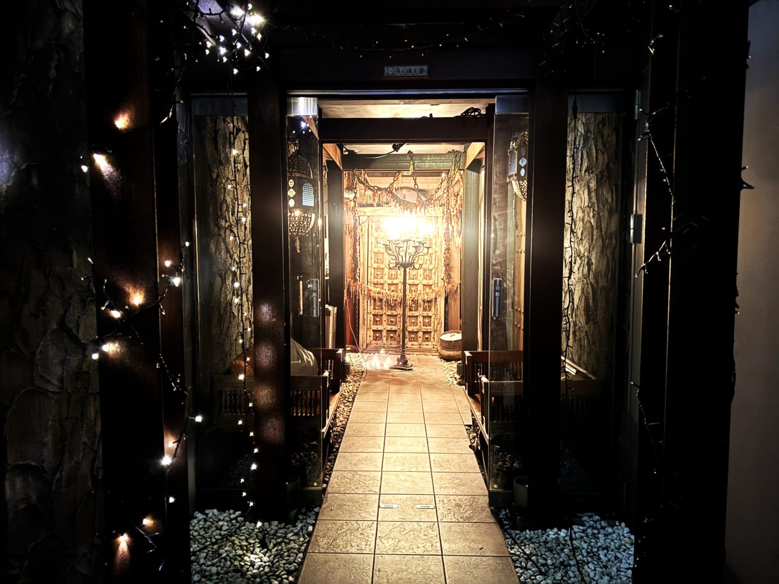 店内はジャズが流れるゆったりとした高級感溢れる雰囲気。風呂敷のようなフワッとしたカーテンや綱、すだれといった和風の装飾が素敵です。