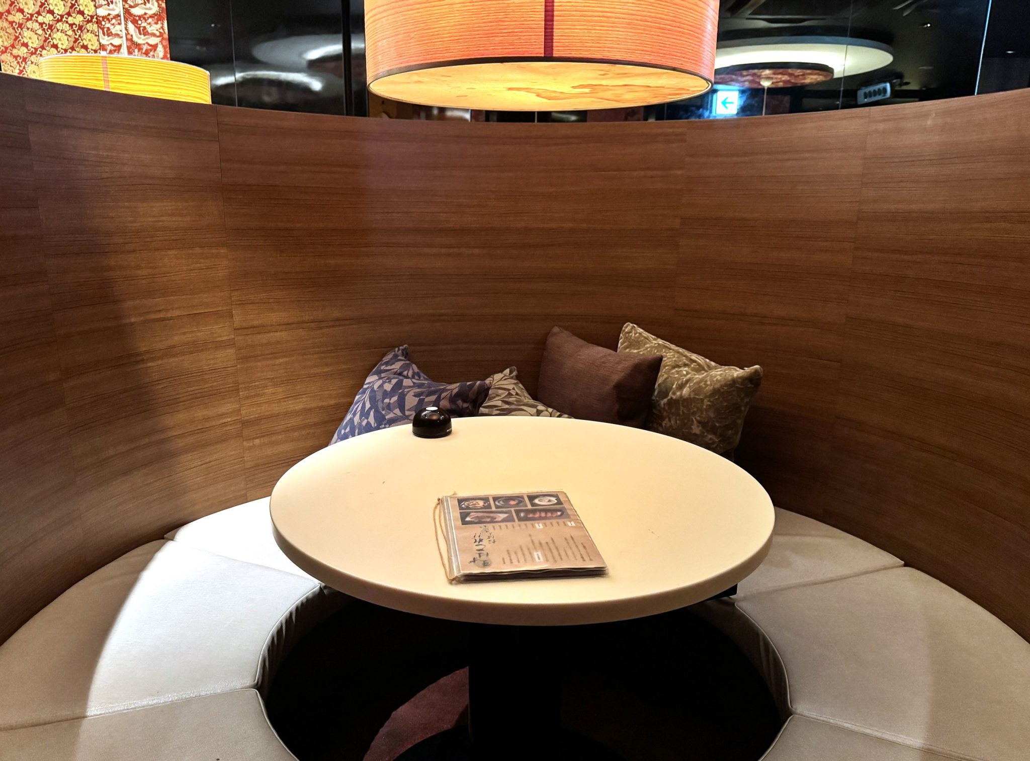 円卓を最大6名で囲めるボックス席は、和柄のクッションが置かれたソファーで座り心地も抜群。天井には和柄の装飾が施され、おしゃれな雰囲気を演出していますよ。
