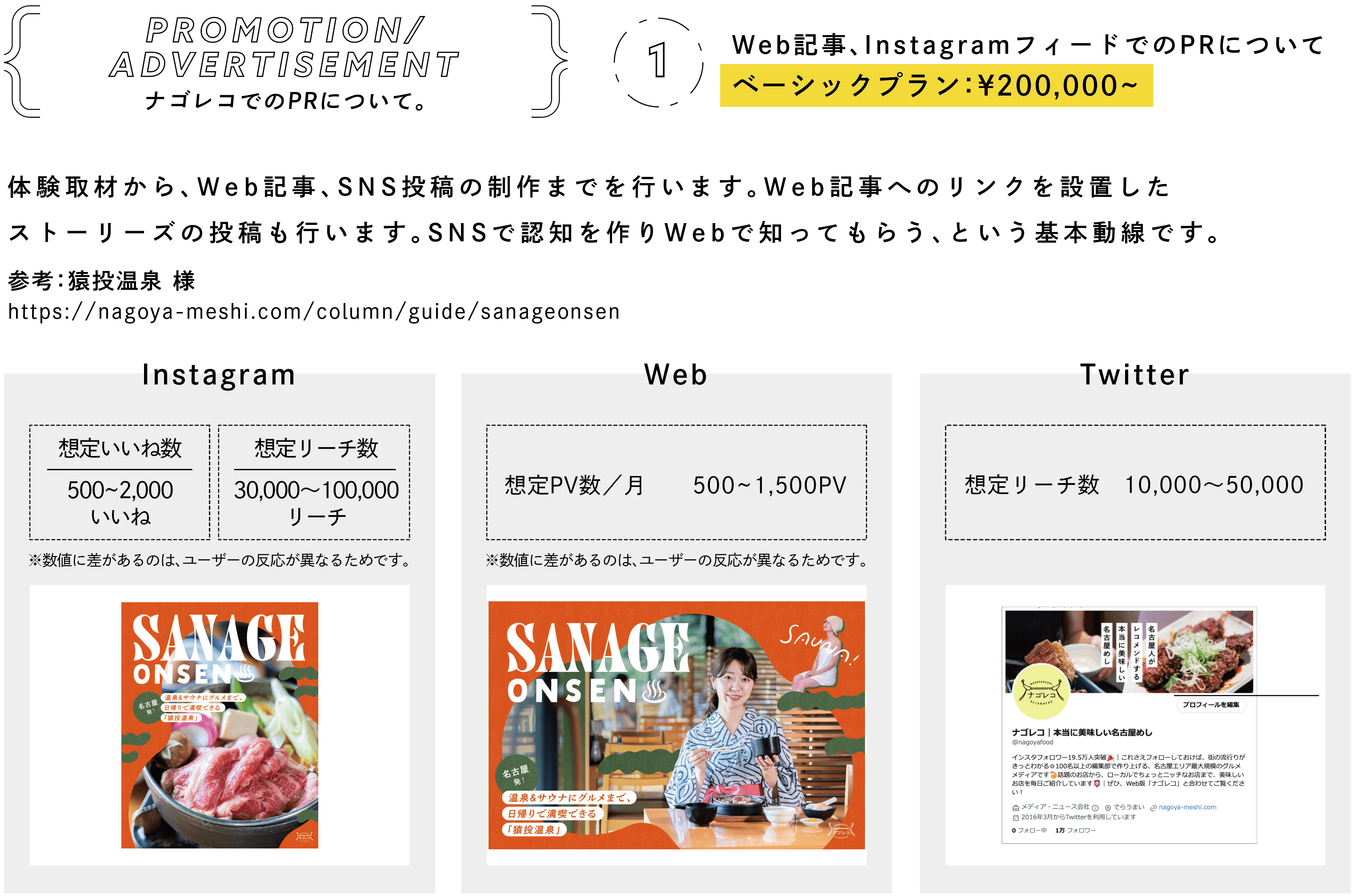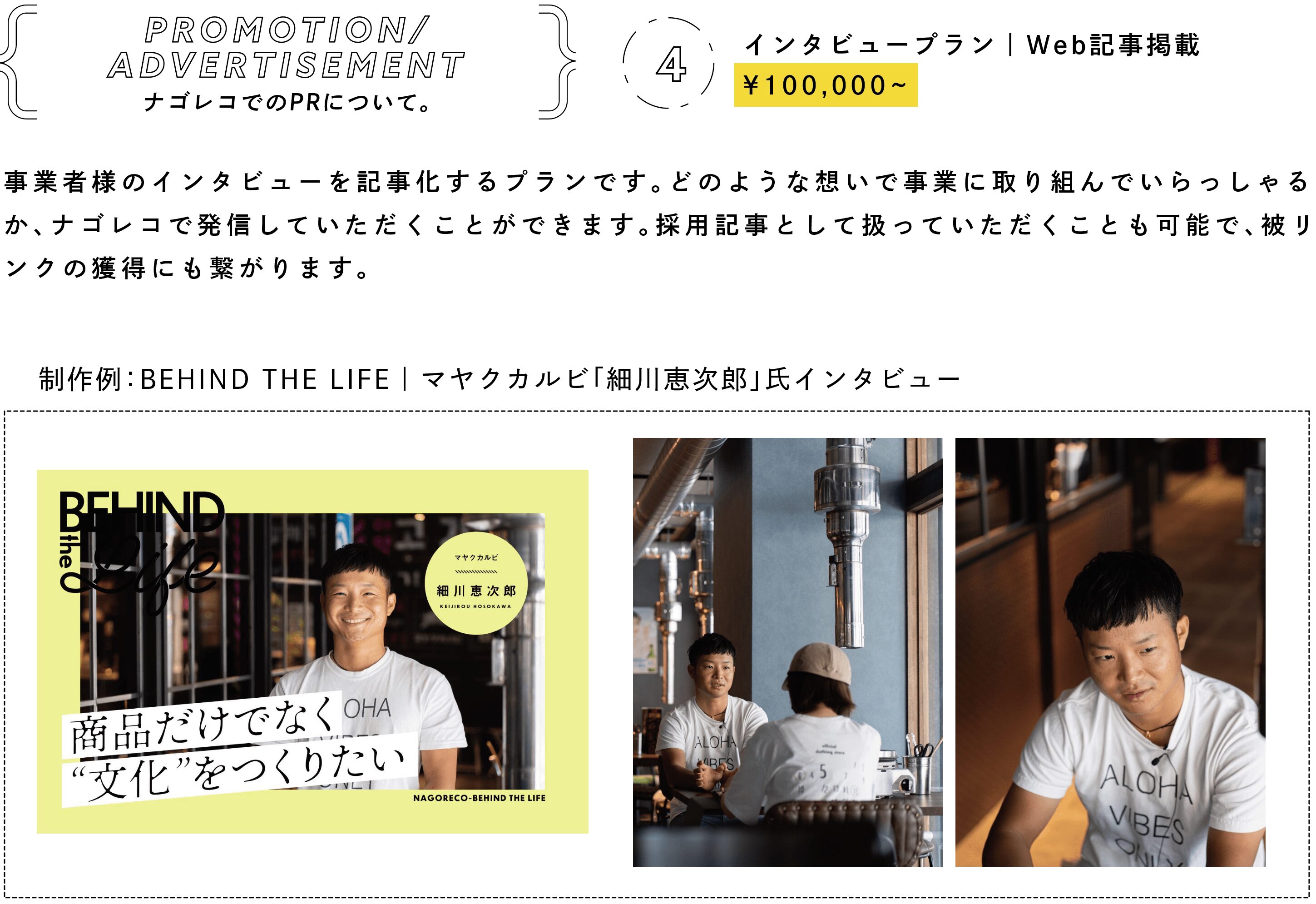 ナゴレコの基本プランです。取材内容を元に記事化し、ナゴレコWebサイトとSNSに配信するプランです。