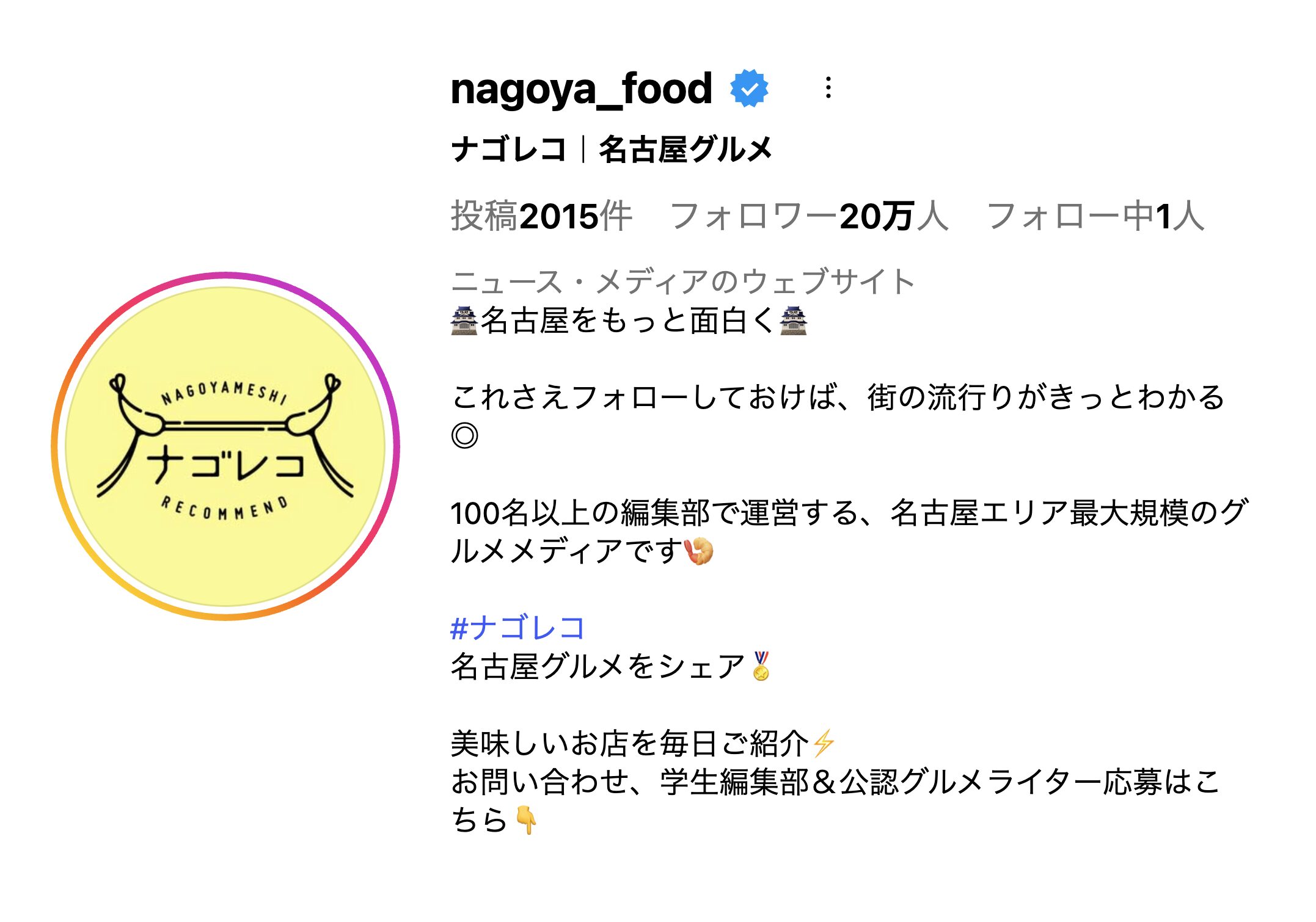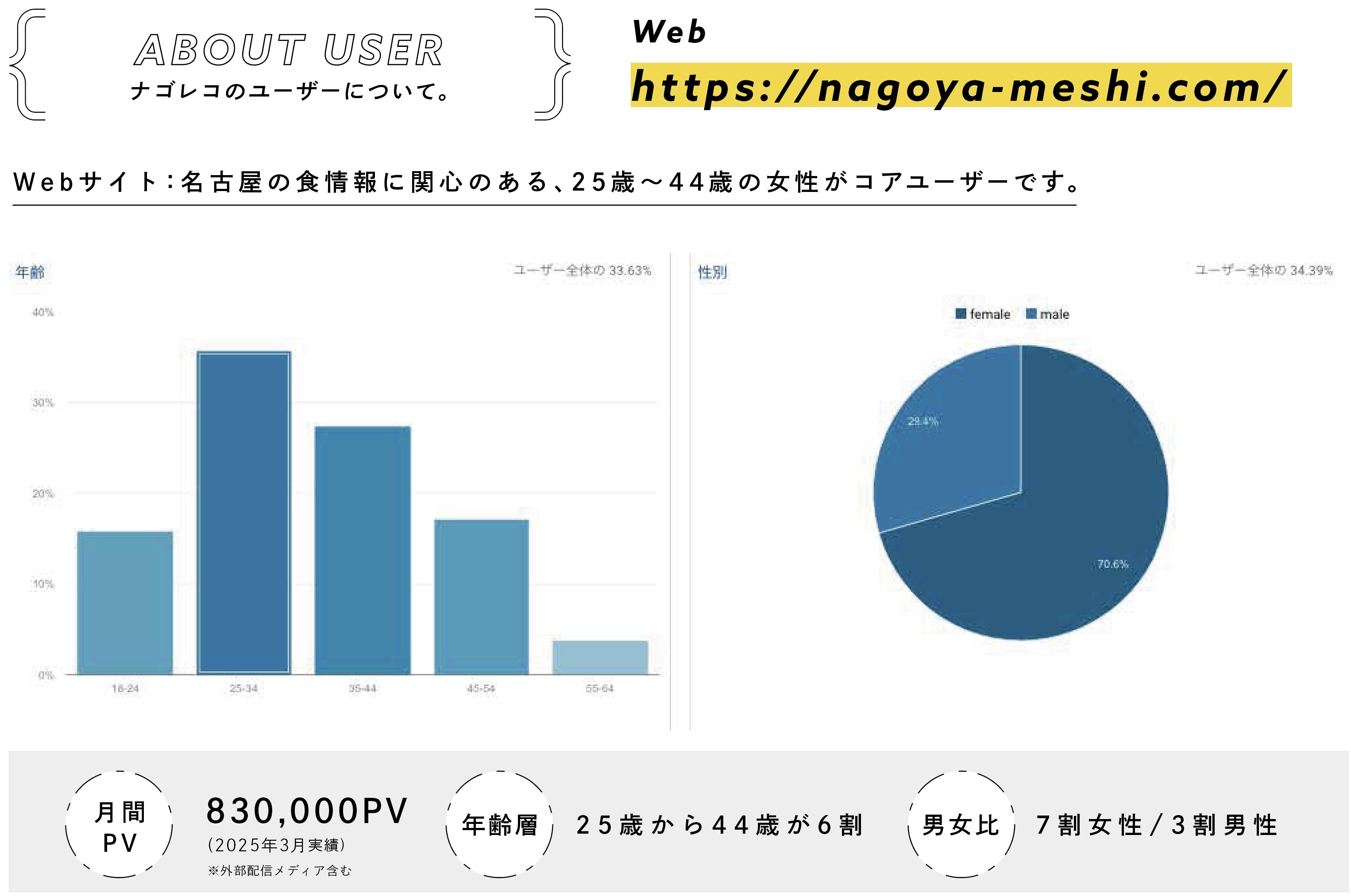 ナゴレコは月間約100万PV(外部配信含む)、SNSフォロワー20万人を超える名古屋エリア最大規模のローカルメディアです。
