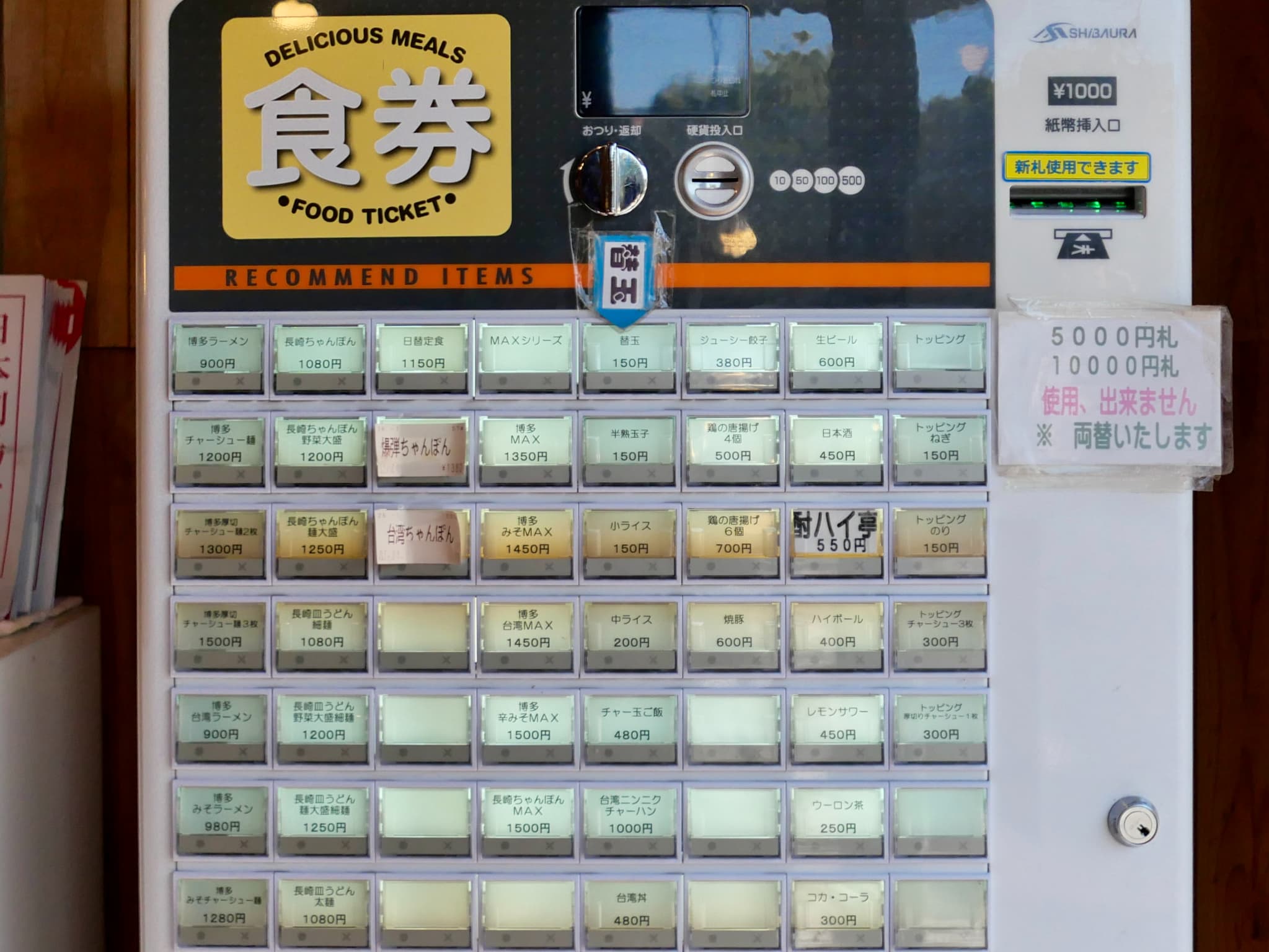 看板には、店名ではなく「博多ラーメン」「長崎ちゃんぽん」の文字が。