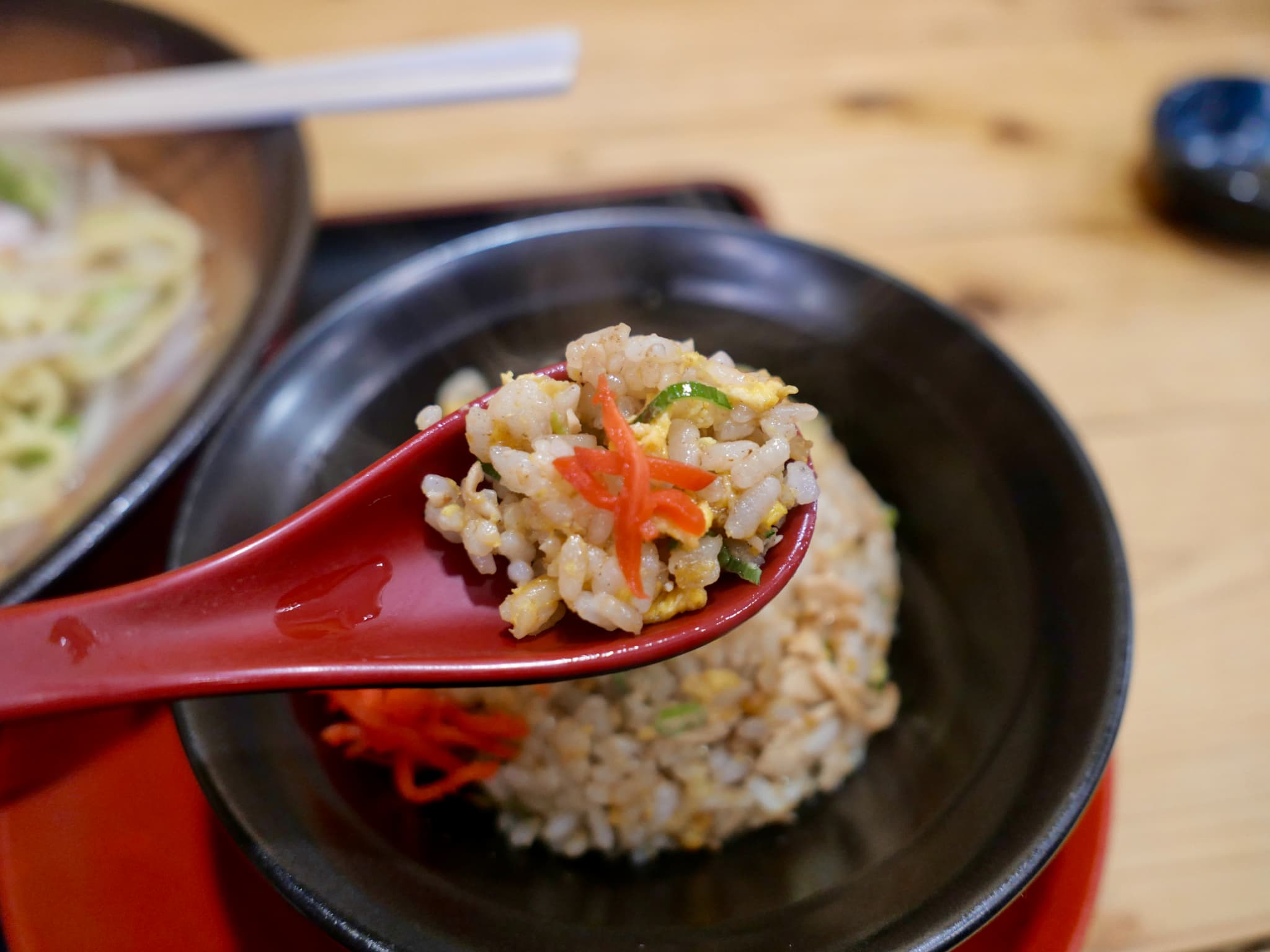セットのミニチャーハンには、玉子とネギ、ホロホロ食感のチャーシューが使われています。