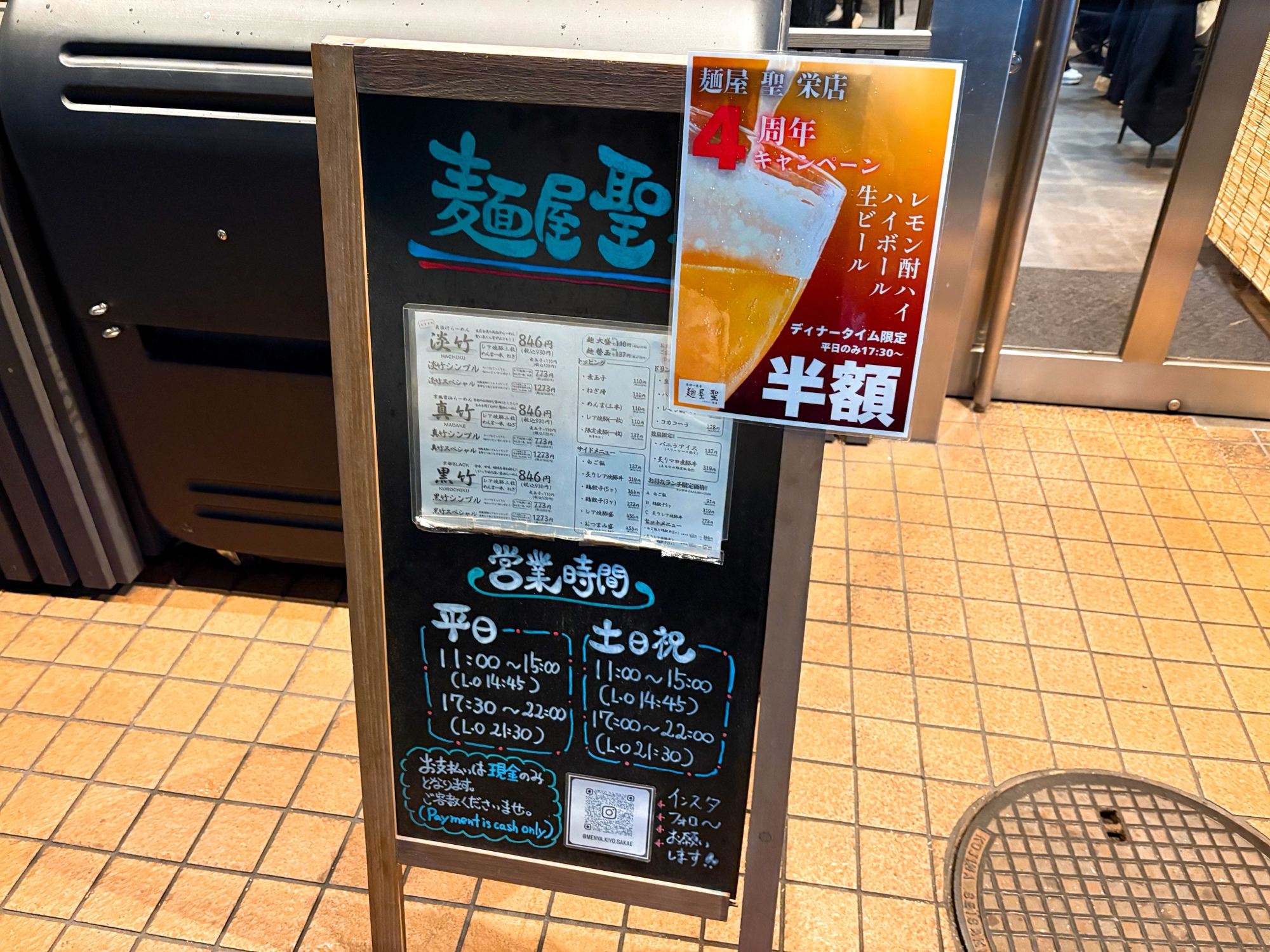 お店の前にはメニュー表や営業時間、注意事項などが記載されている看板が…!
