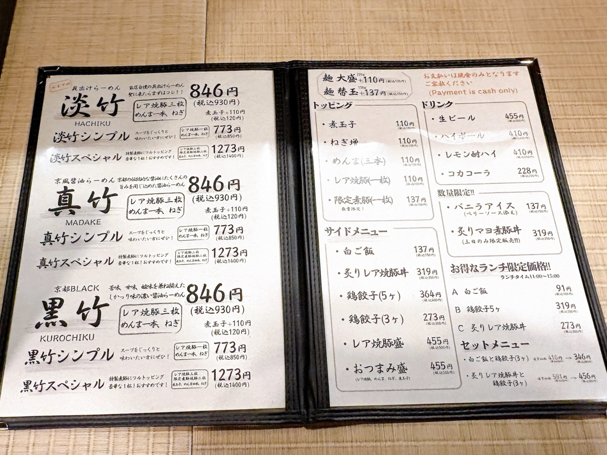 こちらがメニュー表。表紙にはスープ、麺、チャーシュー、それぞれのこだわりがたっぷりと載っています!