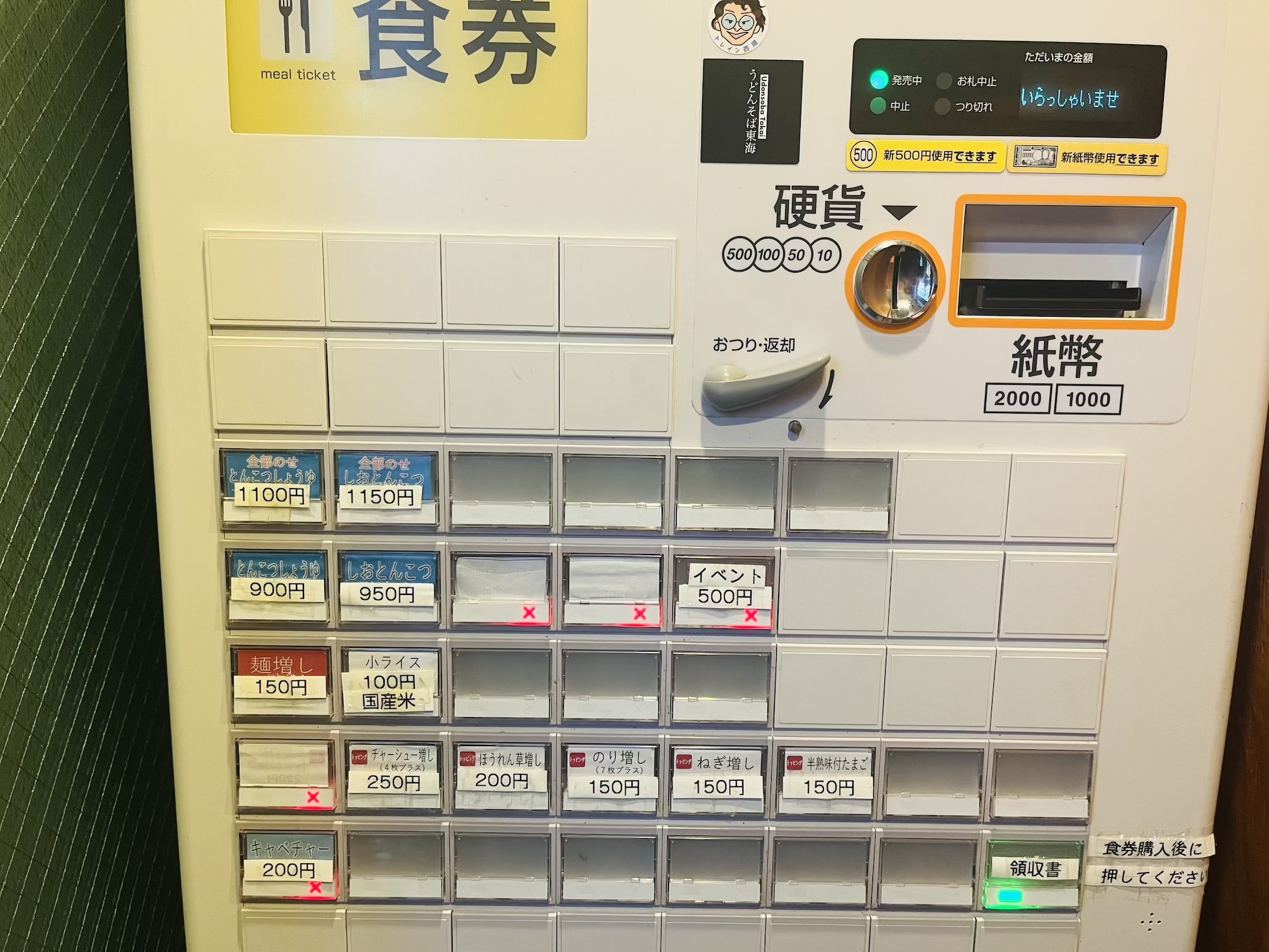 店内入ってすぐにある券売機でメニューを確認していきましょう。