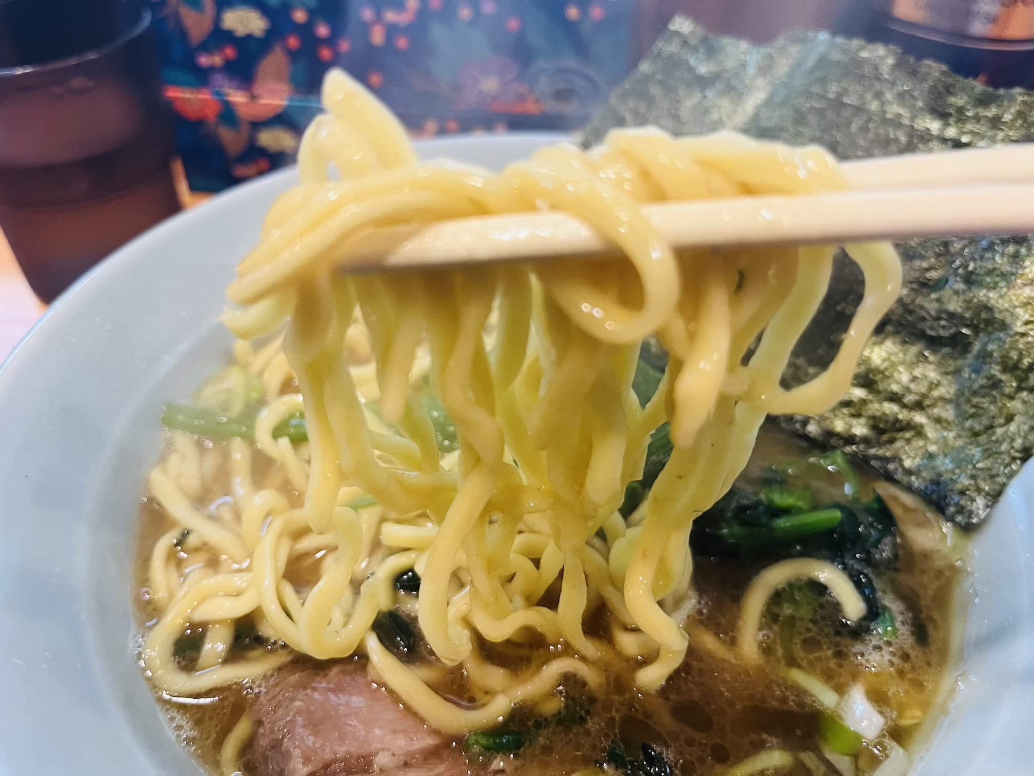 醤油の風味と豚骨のバランスも良く、そこに加わる脂の旨味。家系は比較的濃厚な味のものが多いですが、その中でもマイルドな印象で、旨味が詰まっていながら優しく食べやすいように感じます。こってり系が好きな方は味を濃い目にすると良いかもしれません。このスープを飲んで麺よりもご飯が食べたくなるのが家系の持つ魔力でしょう。