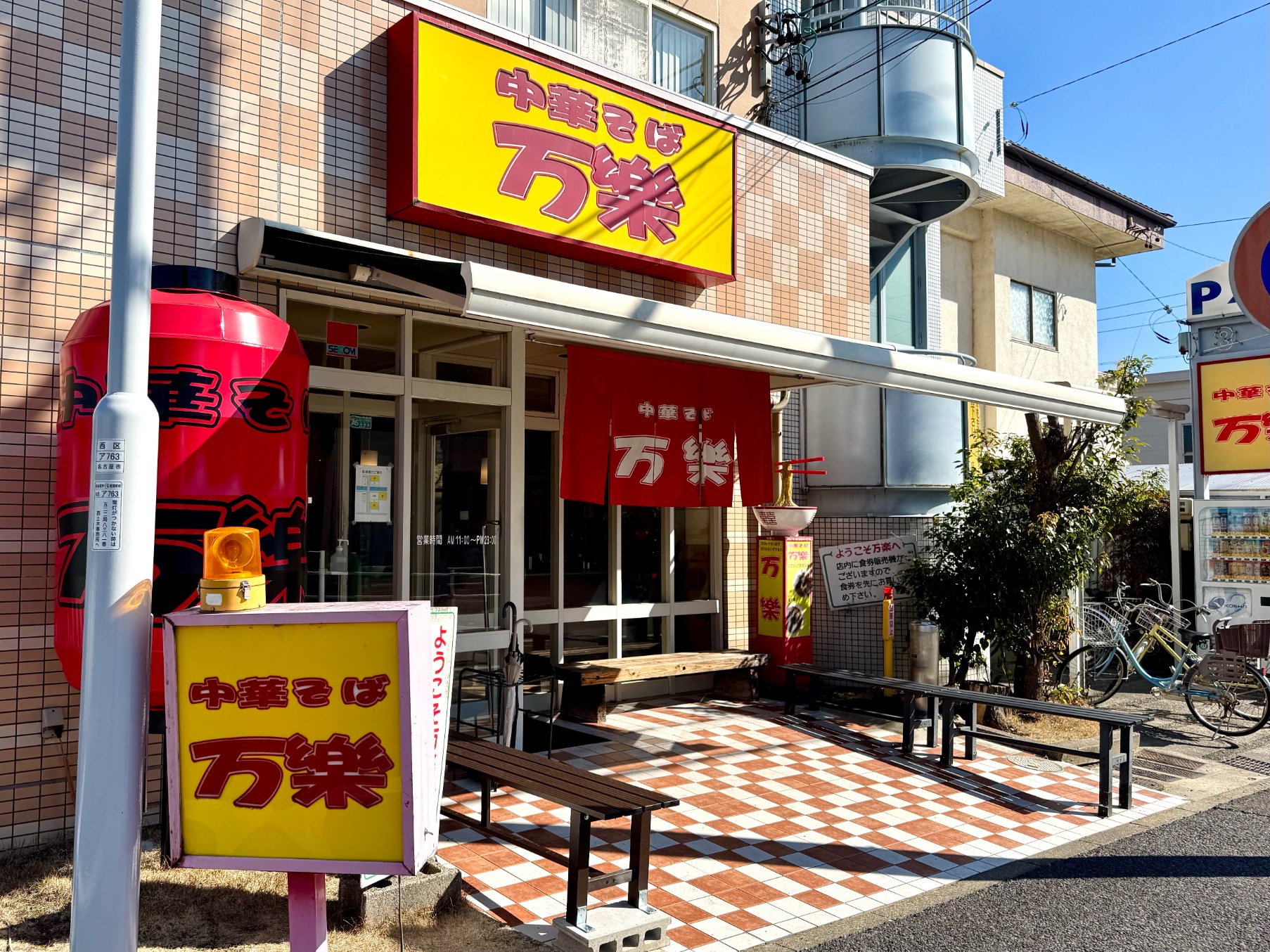 こちらが「中華そば 万楽」さん。最寄駅は地下鉄鶴舞線・庄内通駅。歩くと約5〜8分ほどです。