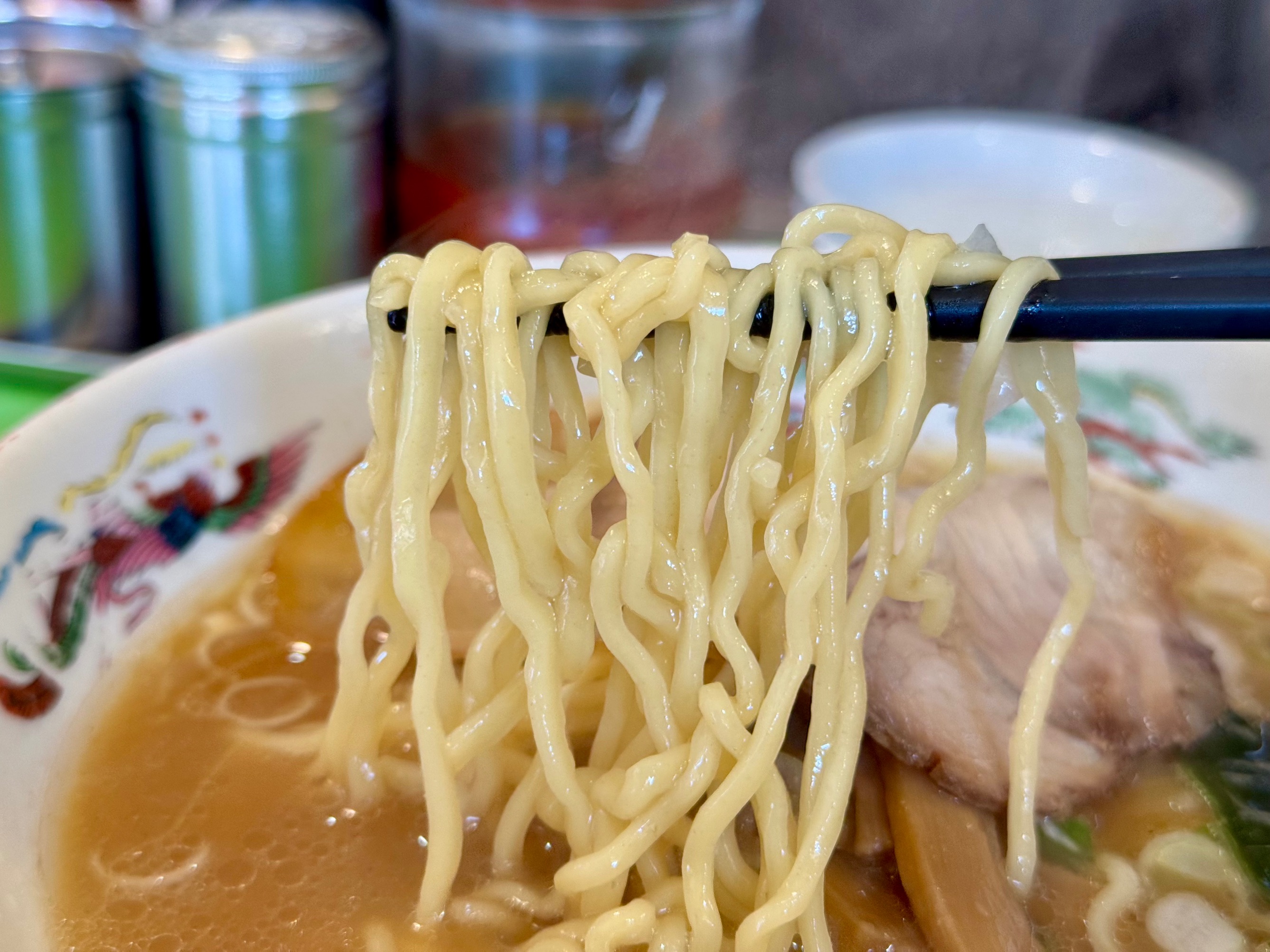 甘みが引き立つ麺はコシがあり、プリっとした食感が特徴的。さらりとしたスープを適度にまとう緩やかなちぢれ麺。筆者はかためが好きなので、食券を渡す際に事前に店員さんに伝えておきました。
