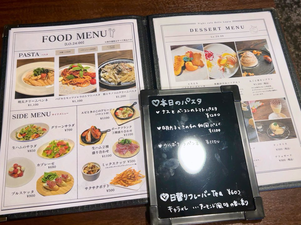 24時まで注文できる!オーナー手作りのケーキやパスタを食べられる夜カフェ「Belle Lapin(ベル ラパン)」