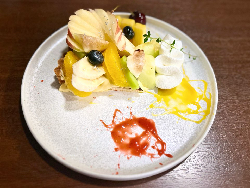 こちらもタルトの上に旬のフルーツがたっぷりと入っていて、これだけでもかなり幸せな味♪キウイ・パイナップル・メロン・ブルーベリー・バナナが入っています◎