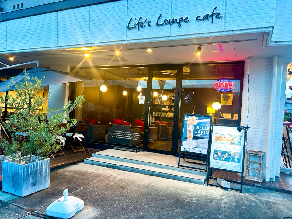昼は同じ場所で「Life’s Lounge cafe(ライフズラウンジ カフェ)」さんが営業しています。そのため「Belle Lapin」さんは夜限定営業!ネオンに輝く「OPEN」が営業中の目印です。