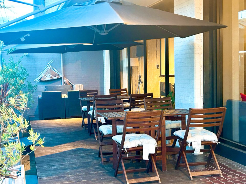 店外にはテラス席もあり、ここにはワンちゃんも連れてこれるそう。