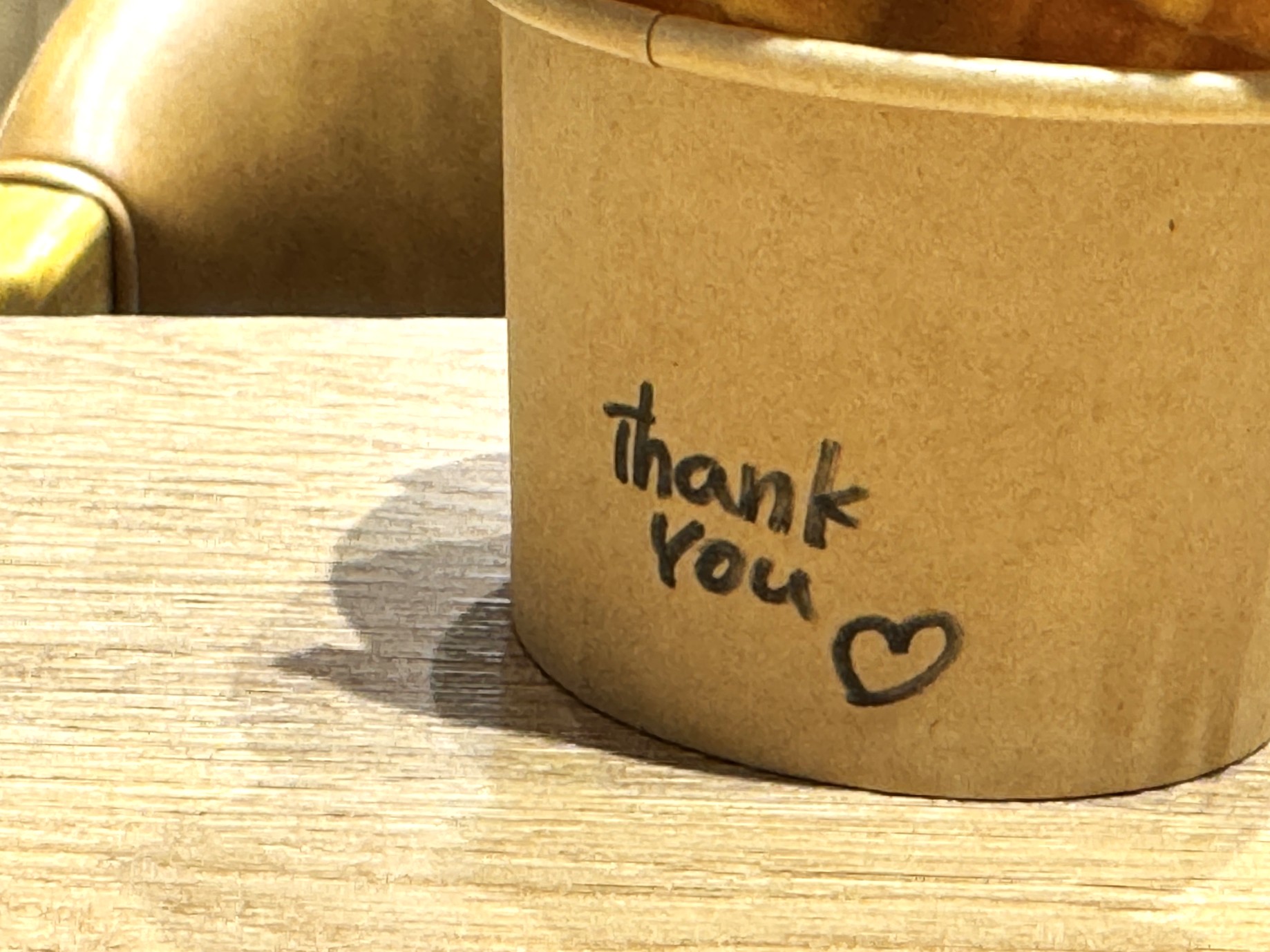 今回はカップでの提供を選んだのですが、カップの裏側にはお店からの可愛らしいメッセージが♡ささやかなことであっても、こういう気持ちのこもったサービスは嬉しいですよね♪