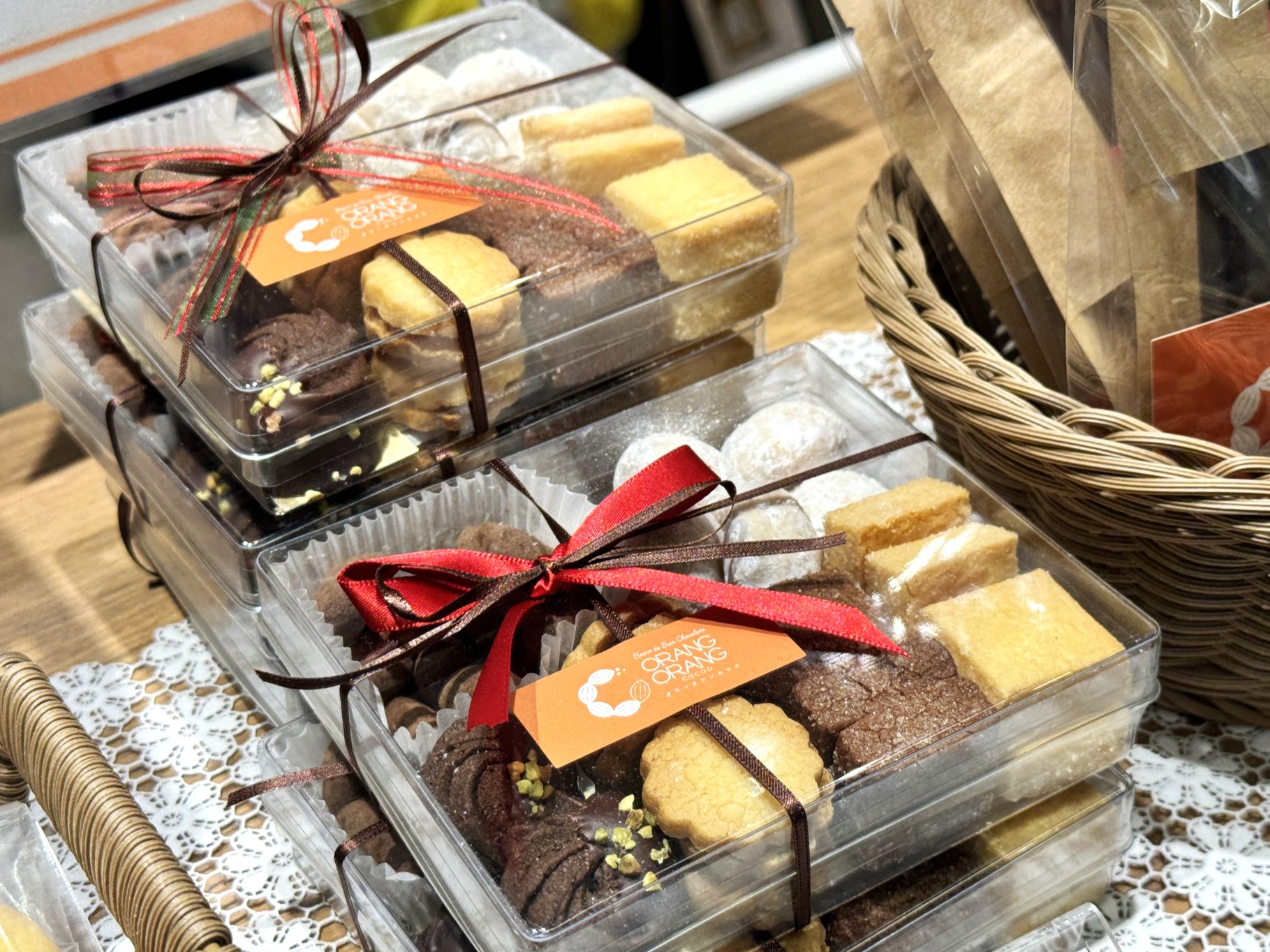 店頭に並んでいるチョコレートや焼き菓子は、あらかじめ箱詰めされたものもありますが、好みのものを組み合わせてオリジナルギフトをつくることができます。