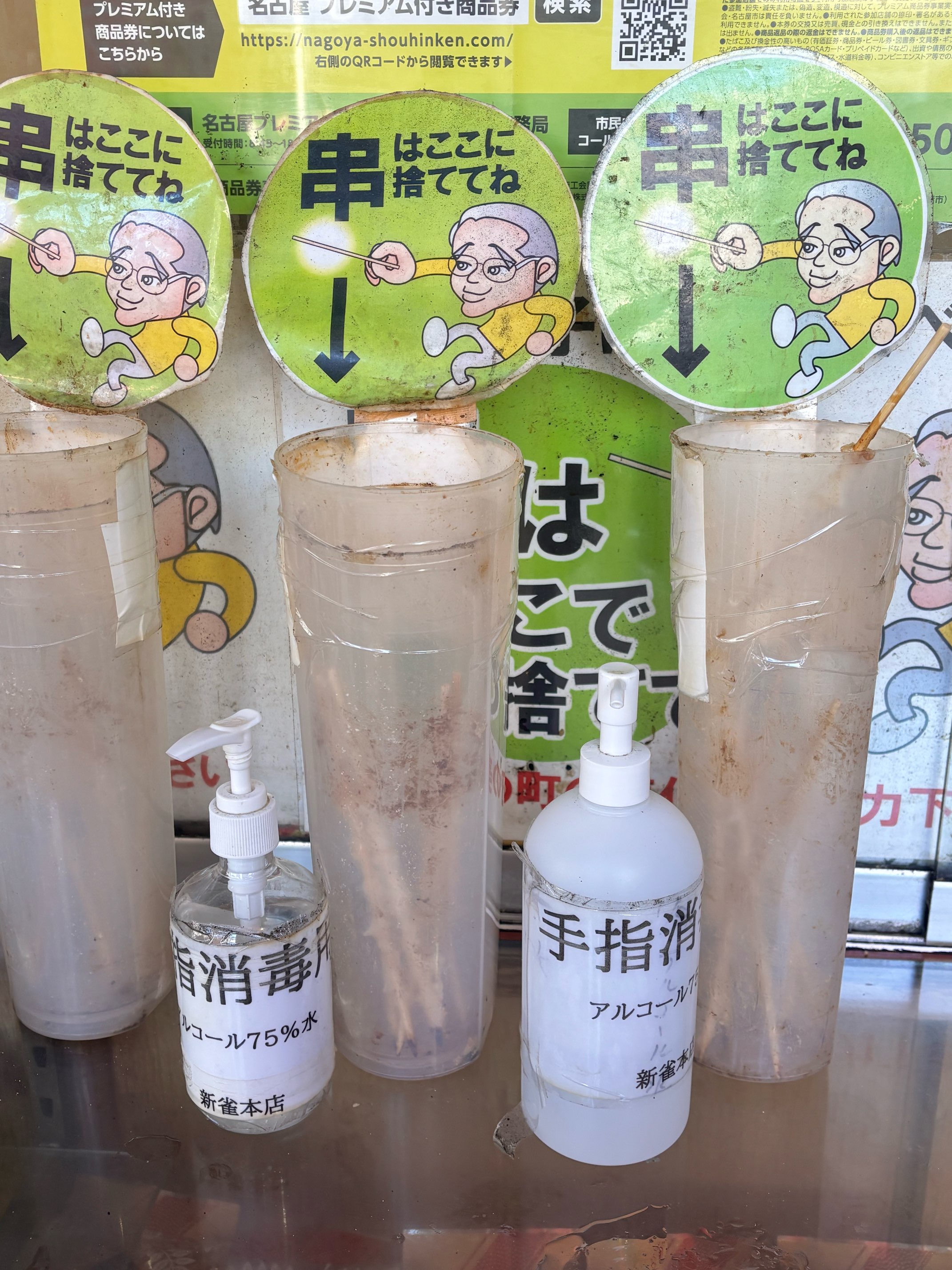 お店の外には、このように団子の串を捨てるところがありました!団子をお店で買ってから、お店の周辺で食べている人が多くいました。