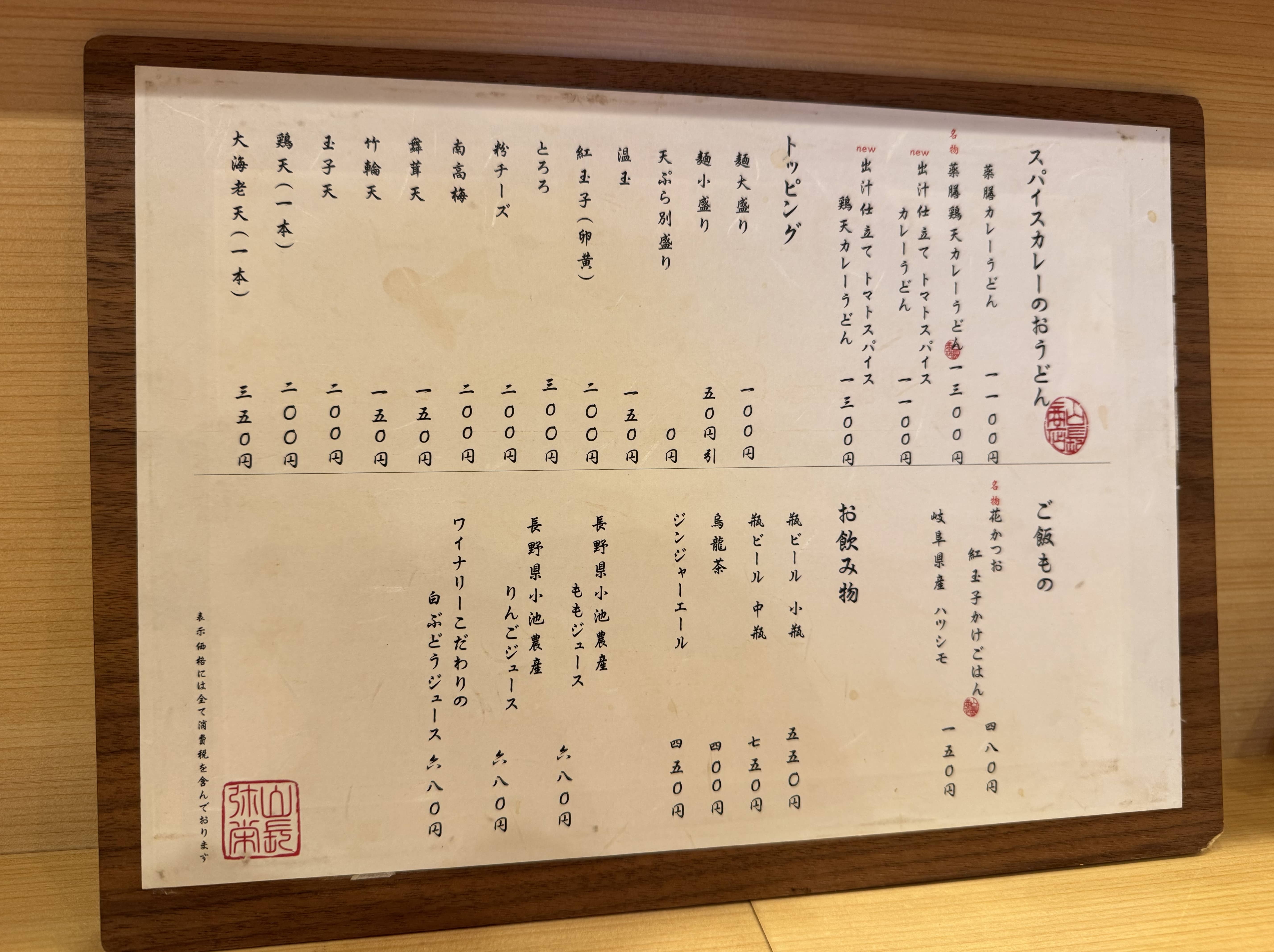 暖かいうどんと冷たいうどんだけでなく、天ぷらやトッピング、ご飯ものまで揃います。中にはスパイスカレーのおうどんなるものまで…惹かれますねー!