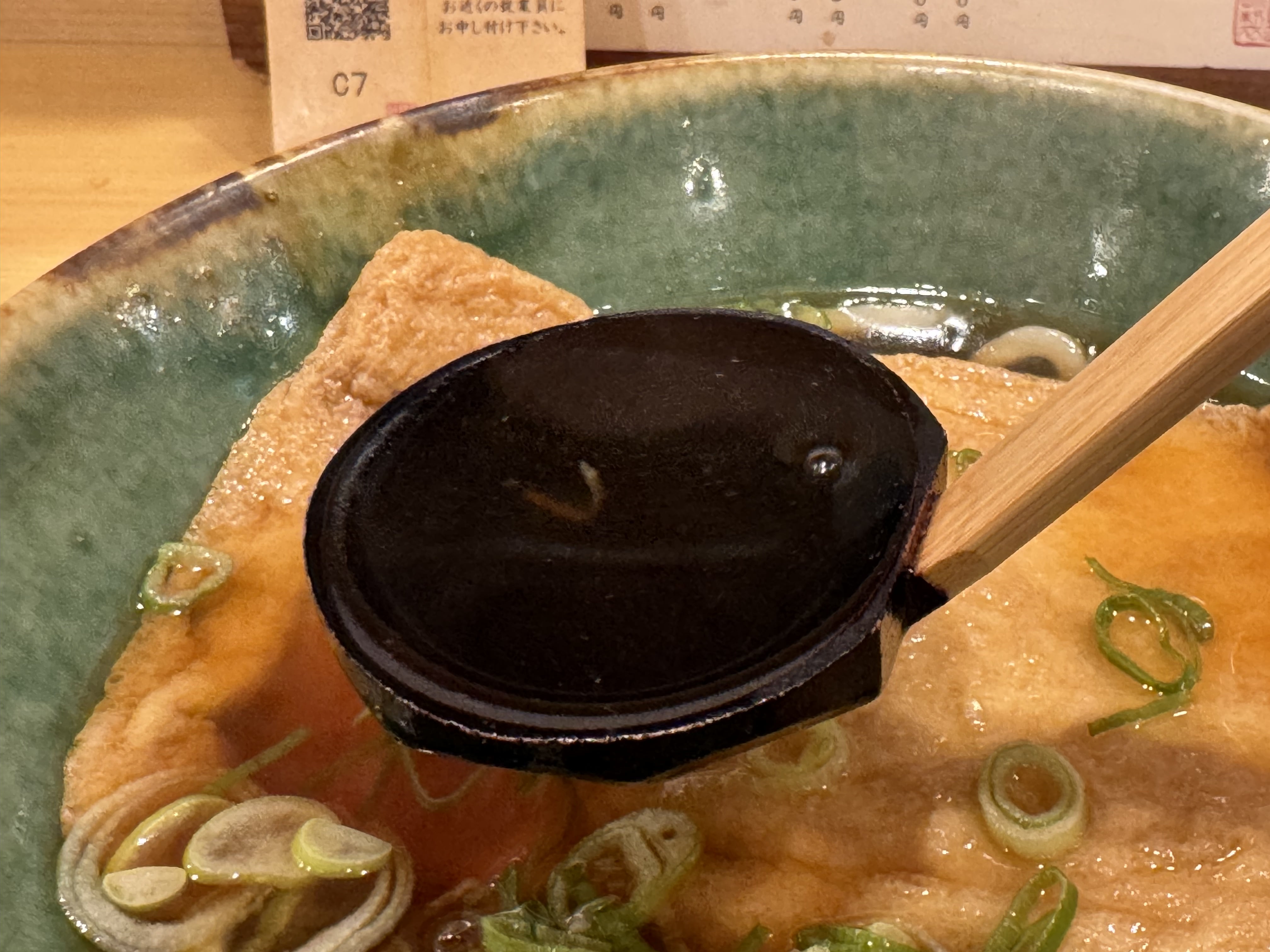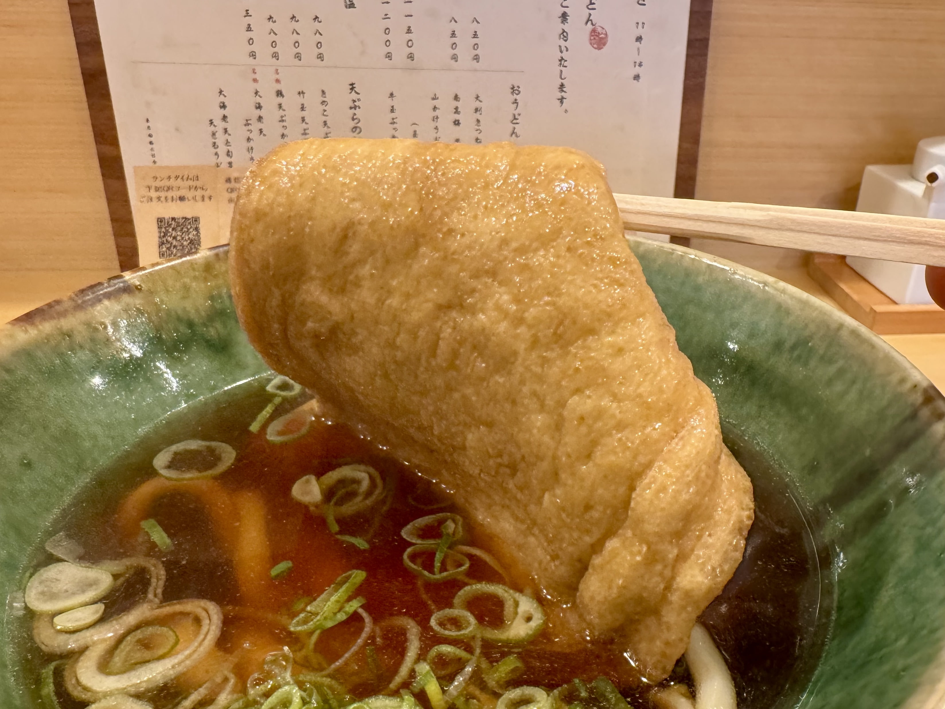 大判油揚げは、もう出汁がしみっしみ!一口ごとにブワーッと出汁のうまさと油揚げの甘みが広がっていきます。