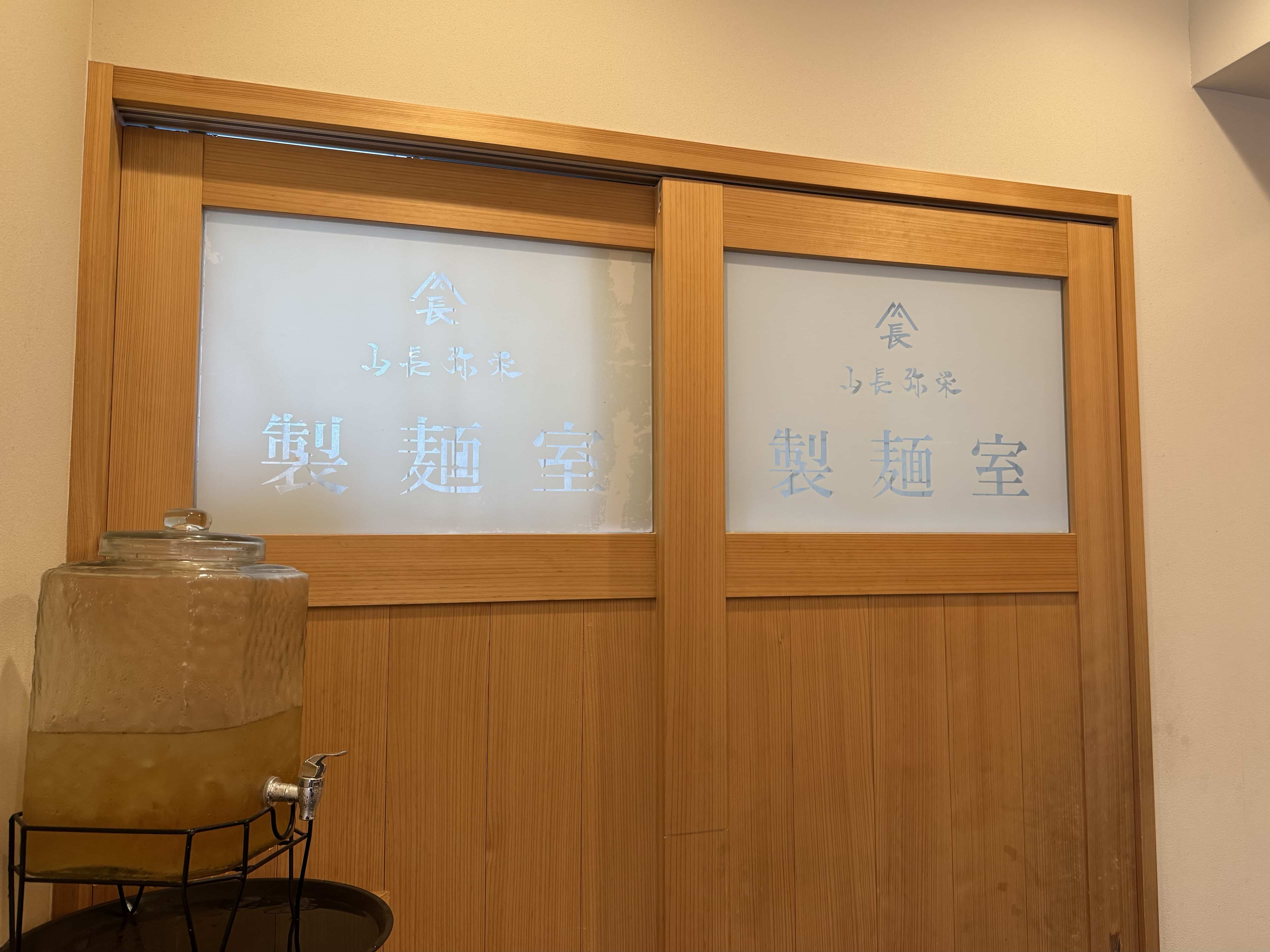 左手には製麺室が。なんとうどんまで店内仕込みというこだわり。期待が高まりますね。