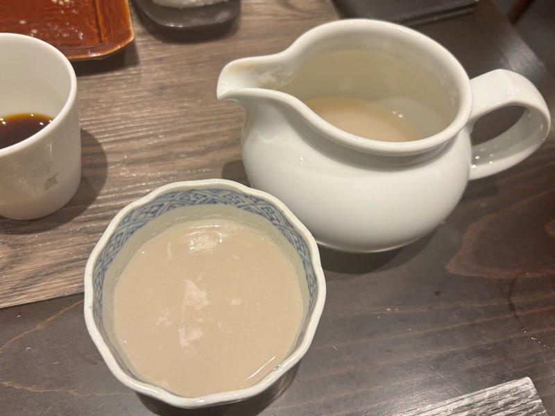 食後に提供されるそば湯は濃厚でとろみがあり、香りをしっかり感じながらホッと一息。