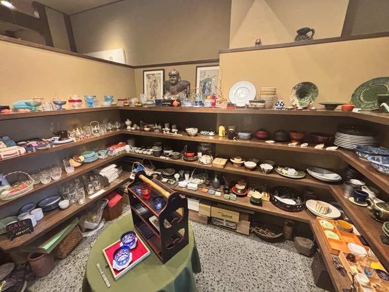 お皿やおちょこなど、落ち着いた色味や質感の食器を中心に、キーホルダーやタオルなどの雑貨まで幅広く取り揃えられており、思わず手に取りたくなるアイテムがずらり!