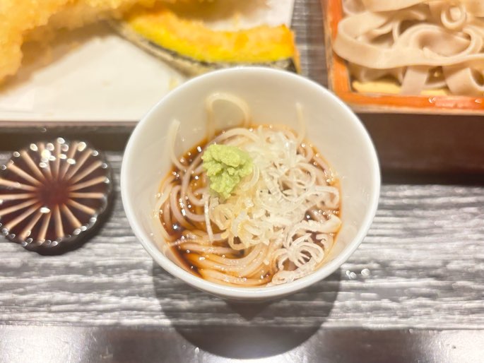 2種類の食感の違う麺を楽しむことができ、天ぷらもついてくるのは満足度が高いです!